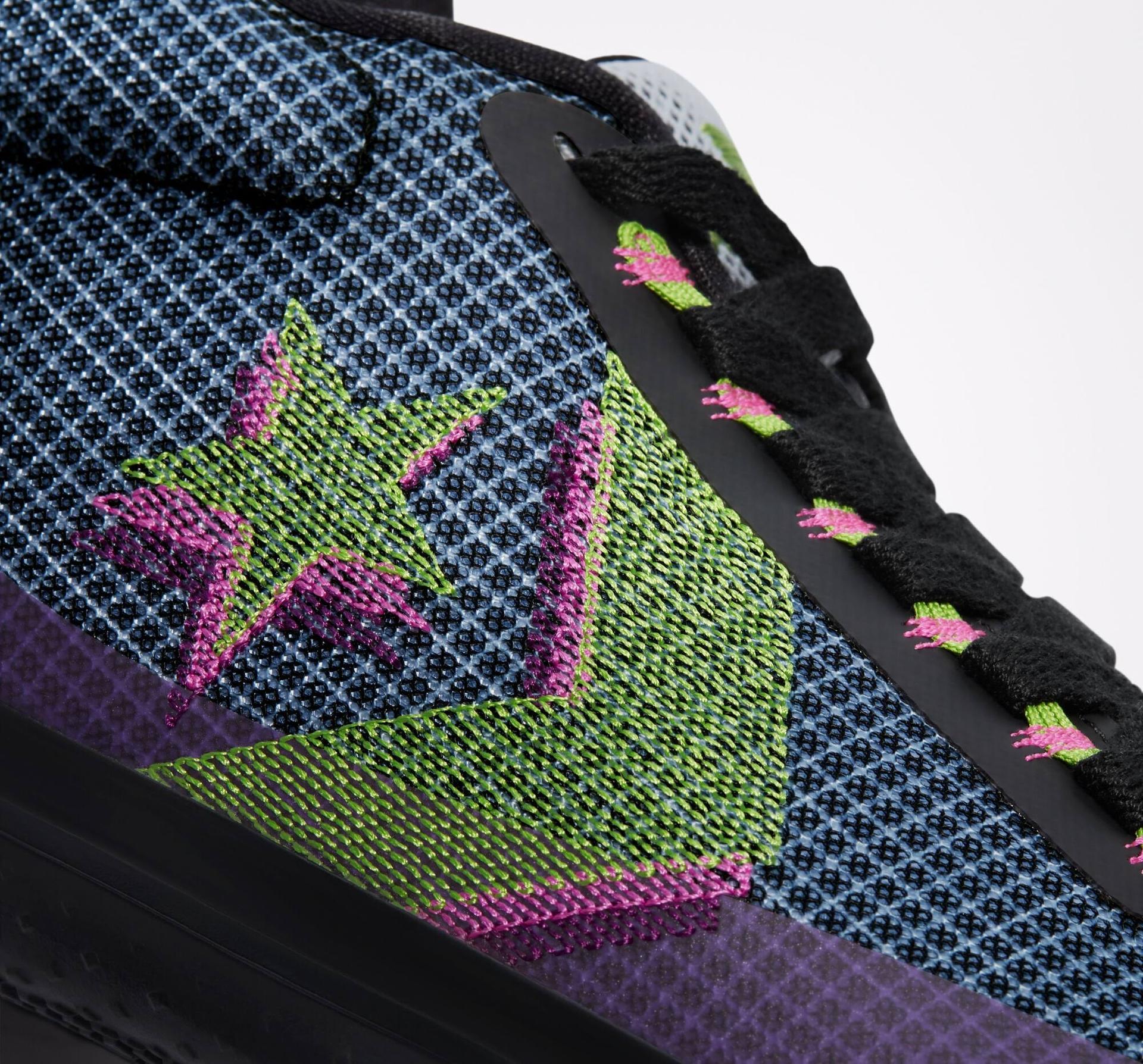 Cholewka z siateczki z czarnymi, fioletowymi i zielonymi elementami