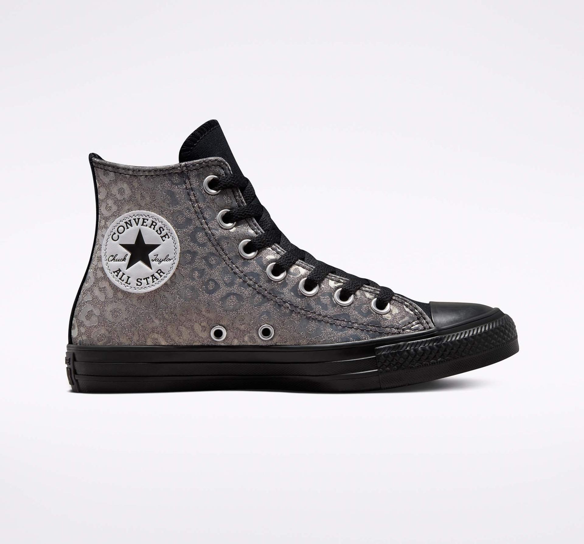 But z wysoką bawełnianą cholewką pokrytą brokatowym wzorem w cętki
