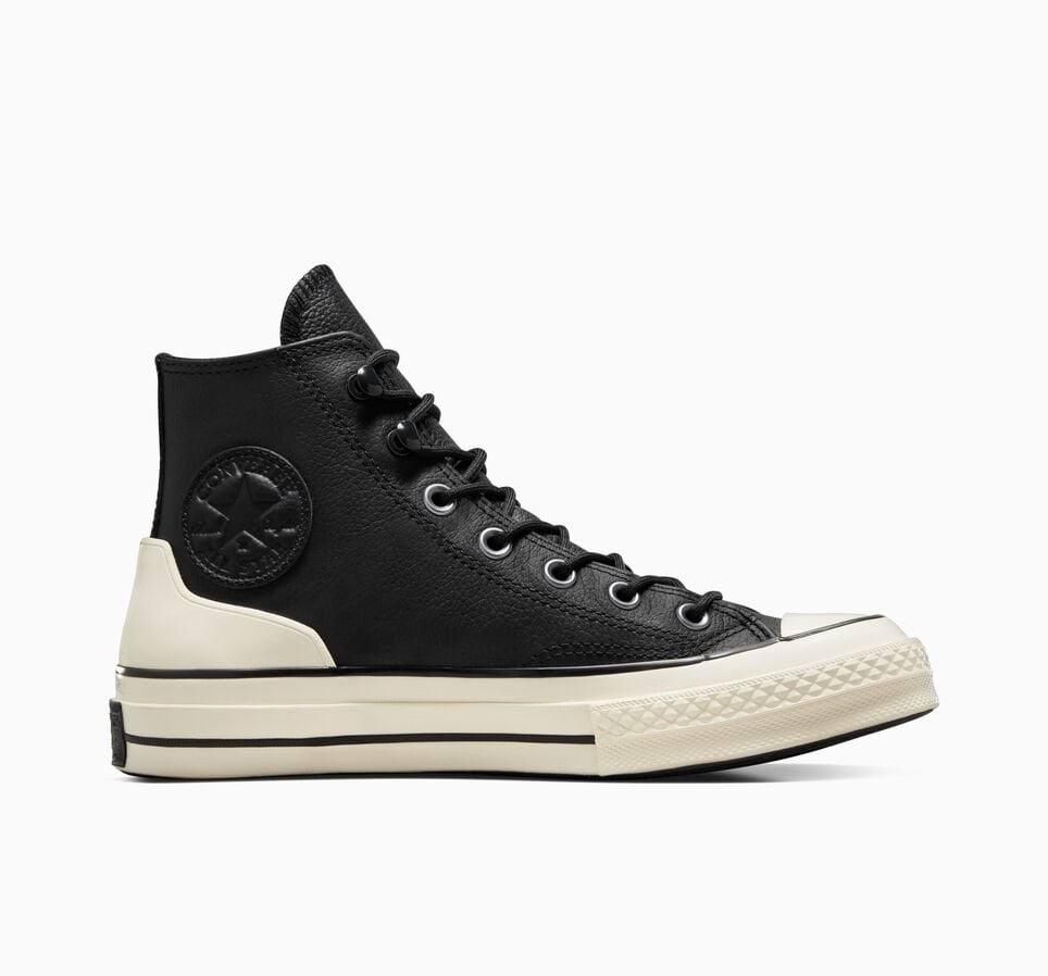 Nowe wydanie Chuck 70 prezentuje skórzaną cholewkę o właściwościach wodoodpornych z wysokimi nakładkami z gumy, które chronią przed deszczem. Elementy zaczerpnięte z butów trekkingowych oraz neutralna kolorystyka dopełniają ten wyjątkowy model w wersji premium. W nowych Chuck 70 możesz śmiało wyruszyć na zewnątrz, nawet gdy pogoda temu nie sprzyja.