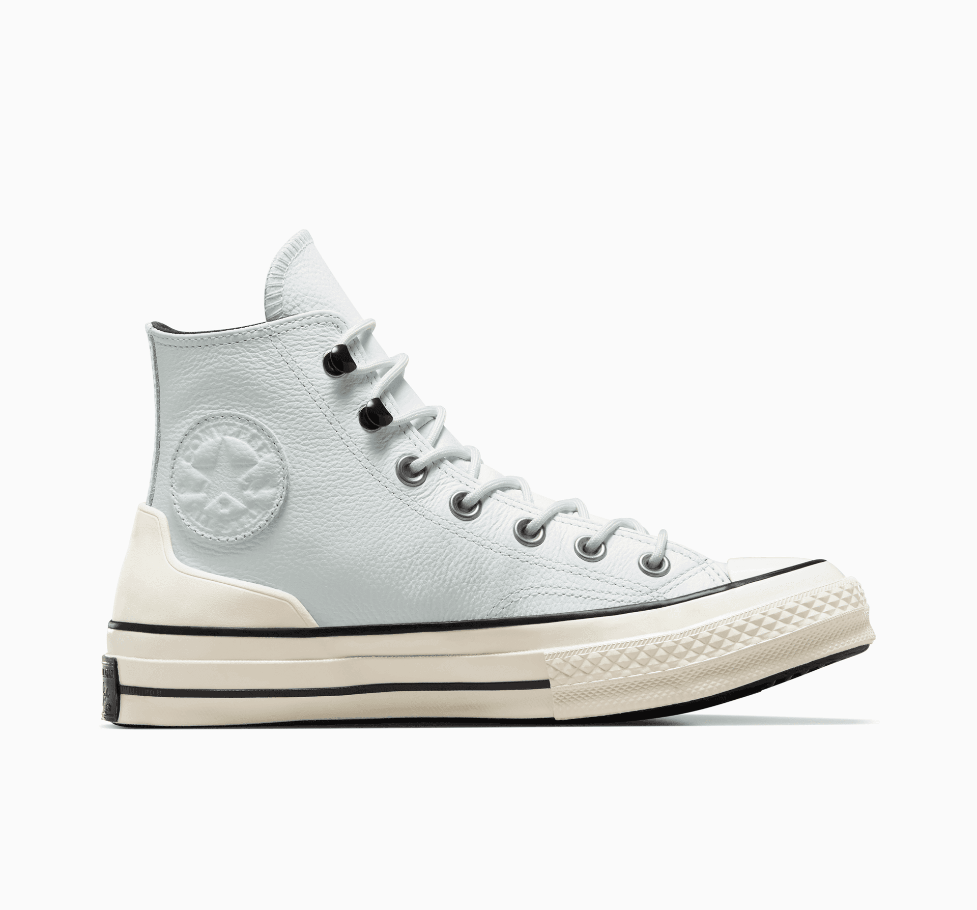 Nowe wydanie Chuck 70 prezentuje skórzaną cholewkę o właściwościach wodoodpornych z wysokimi nakładkami z gumy, które chronią przed deszczem. Elementy zaczerpnięte z butów trekkingowych oraz neutralna kolorystyka dopełniają ten wyjątkowy model w wersji premium. W nowych Chuck 70 możesz śmiało wyruszyć na zewnątrz, nawet gdy pogoda temu nie sprzyja.