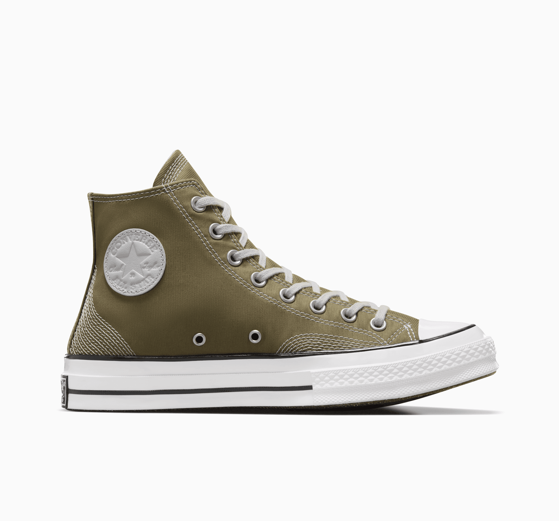 Te już kultowe tenisówki podnoszą stawkę dzięki trwałej konstrukcji z licznymi przeszyciami, stanowiącymi ukłon w stronę ręcznego rzemiosła. Klasyczne detale modelu Chuck 70 zostały wzbogacone o efekt zużytego materiału i oddychającą wkładką, która świetnie sprawdzi się podczas letniej zabawy.