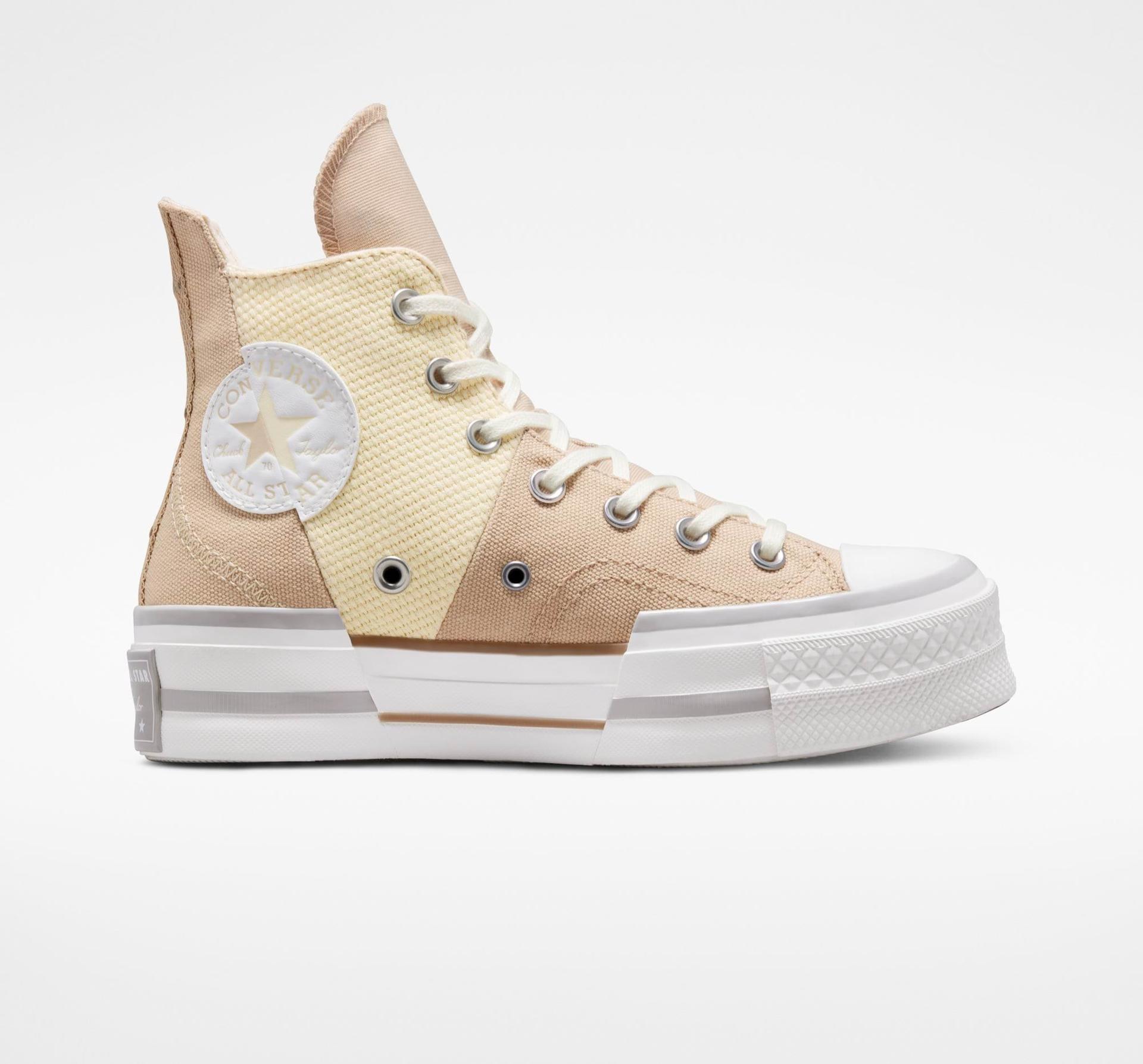 Nieoczekiwana odmiana klasycznego modelu, Chuck 70 Plus łączy w sobie ikoniczne cechy z nowoczesnym stylem. Połączenie różnych rodzajów płótna z asymetrycznymi liniami i kolorami inspirowanymi praktycznością tworzą wyrazisty i niebanalny wygląd. Łączone detale z gumy i naszywki na kostce przyciągają wszystkie spojrzenia, a wygodna amortyzująca wkładka pomaga zachować lekkość stóp
