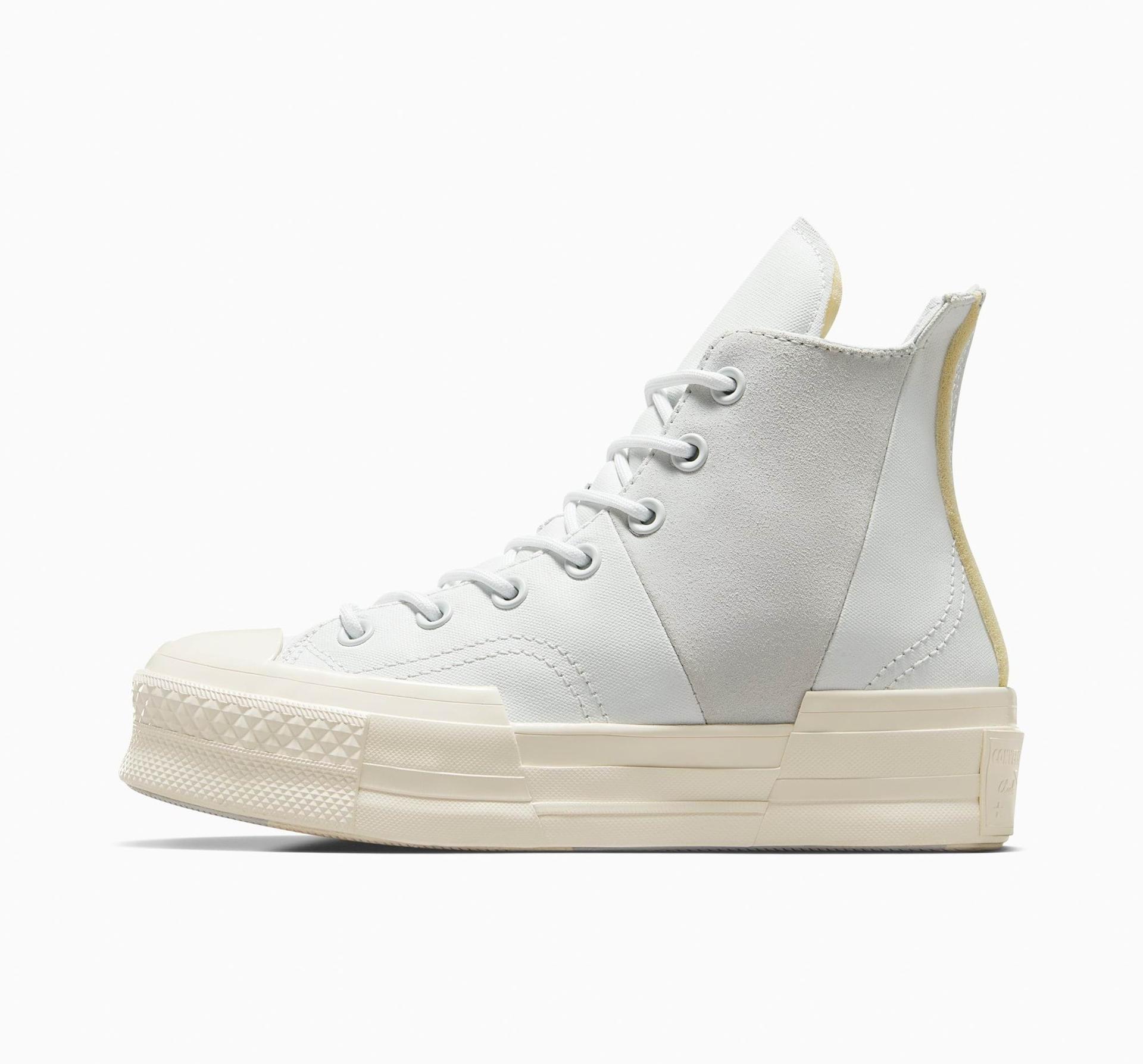 Wieczny klasyk przechodzi aktualizację – model Chuck 70 Plus łączy tradycyjne detale z nowoczesnym, futurystycznym stylem. Zestawienie płótna i zamszu w asymetryczne wzory, tworzy odważną i wyrazistą cholewkę. Dodatkowo, widoczne elementy z pianki na języku i pięcie nadają temu wydaniu niepowtarzalnego stylu, który doda charakteru każdej stylizacji.