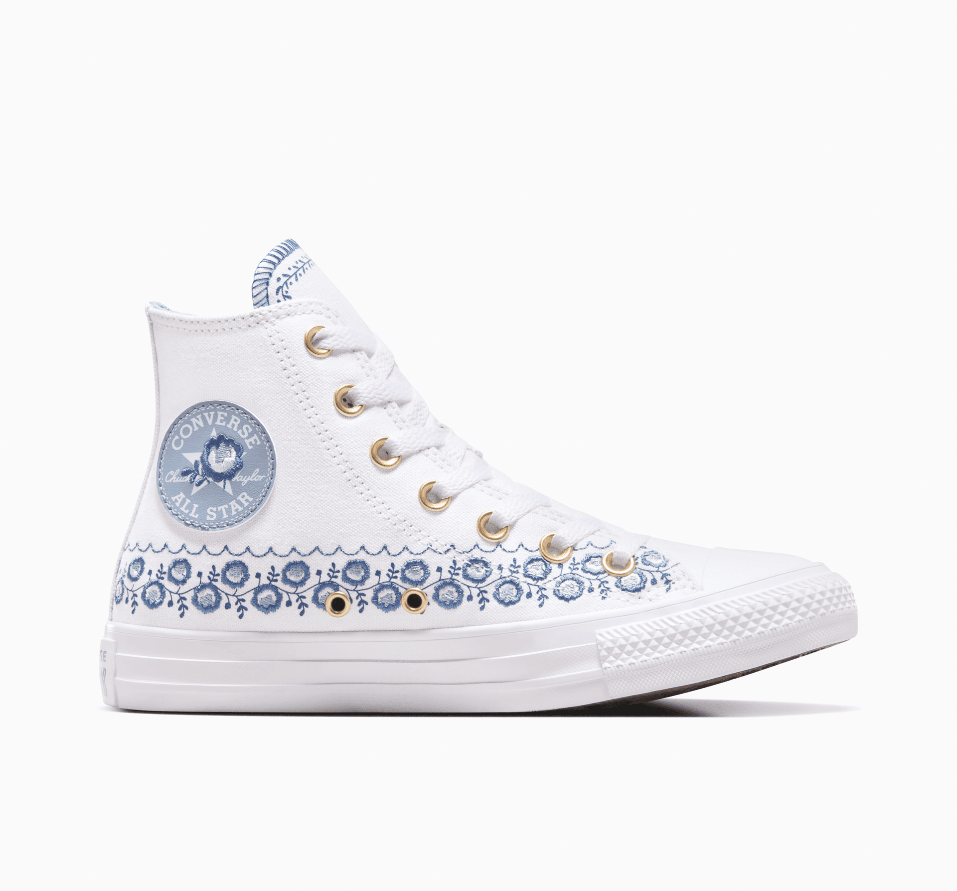 Kwiatowe wzory, jasne pastele oraz złote metaliczne elementy zdobią te klasyczne Chuck. Załóż je, aby wnieść odrobinę stylu boho do swoich luźnych stylizacji.