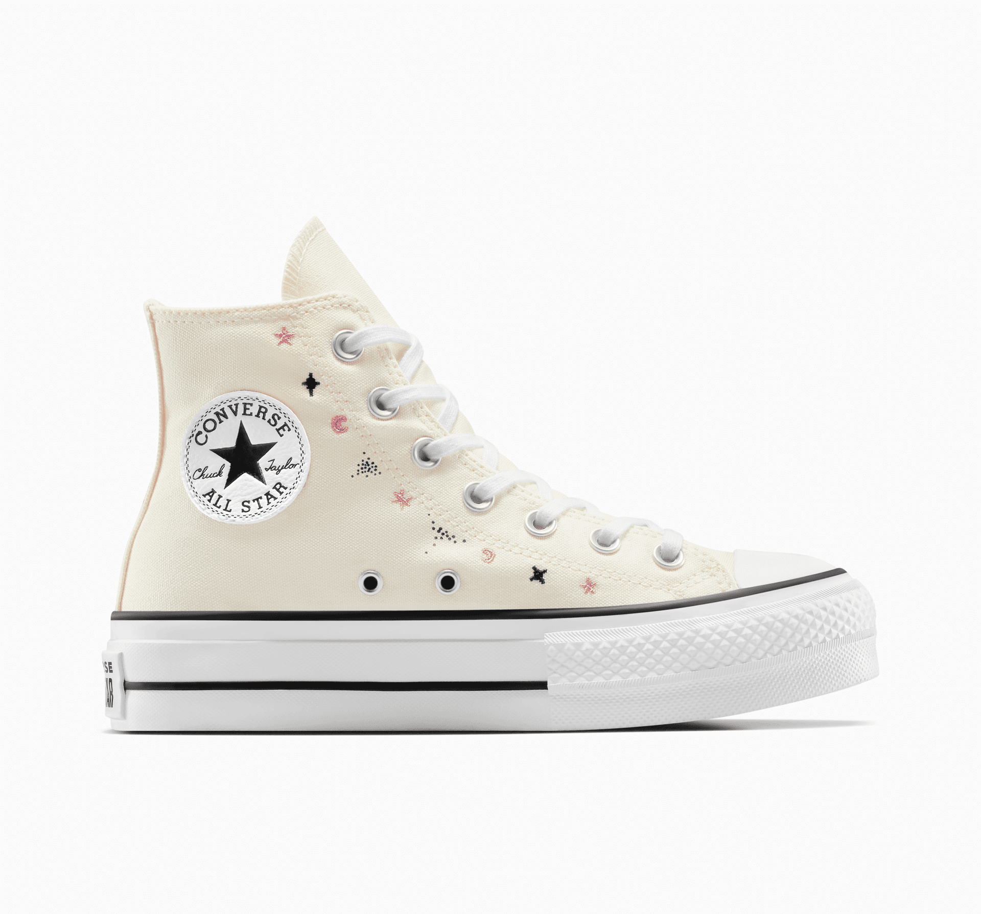 Czerpiąc inspirację z astrologii, te platformy Chucks łączą ponadczasowy wygląd, który znasz i kochasz, z subtelnym niebiańskim haftem.