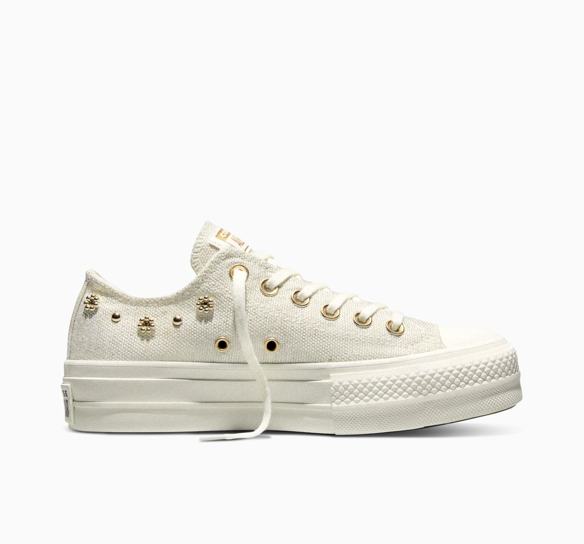 Niektóre rzeczy nigdy nie wychodzą z mody jak Platform Chucks Ta wersja łączy charakterystyczne detale Chuck Taylor z subtelnym połyskiem i zdobieniami z nitów