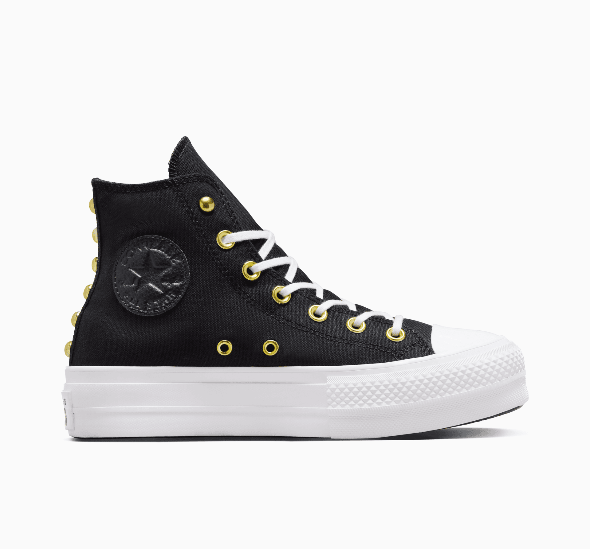 Przenieś swój styl na wyższy poziom dzięki nowym trampkom Chuck na platformie. Klasyczna cholewka z płótna i złote detale nadają wyrafinowanego tonu, który łatwo zestawisz z bardziej lub mniej eleganckimi stylizacjami. Miksuj według własnego uznania.