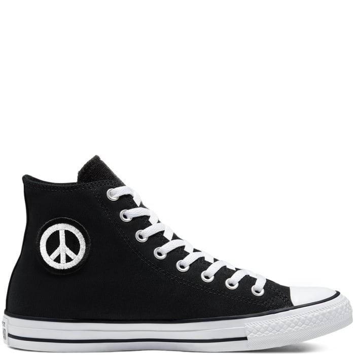 Buty typu high top Chuck Taylor All Star są niekwestionowaną ikoną codziennego stylu od 1917 roku. Nikomu nie trzeba już chyba specjalnie przedstawiać kultowych detali prosto z koszykarskiego parkietu, takich jak płócienna cholewka i podeszwa zewnętrzna z bieżnikiem w romby. Buty z kolekcji Peace zostały zainspirowane latami 70-mi i podtrzymują przesłanie jedności i optymizmu. Odklejana naszywka na kostce z motywem pacyfy daje swobodę stylizacji. Hasło „Peace” rozciąga się od palców po piętę i pozwala wyrazić Twój światopogląd.