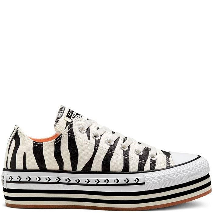 Legenda od 1957 roku. Buty Converse Chuck Taylor All Star Layered Platform Low Top w kobiecym wydaniu. Płócienna cholewka w neutralnych odcieniach wraz z masywną podeszwą w paski, tworzą znakomitą kompozycję kolorystyczną. Całość podkreśla pasek Star CHEVRON.