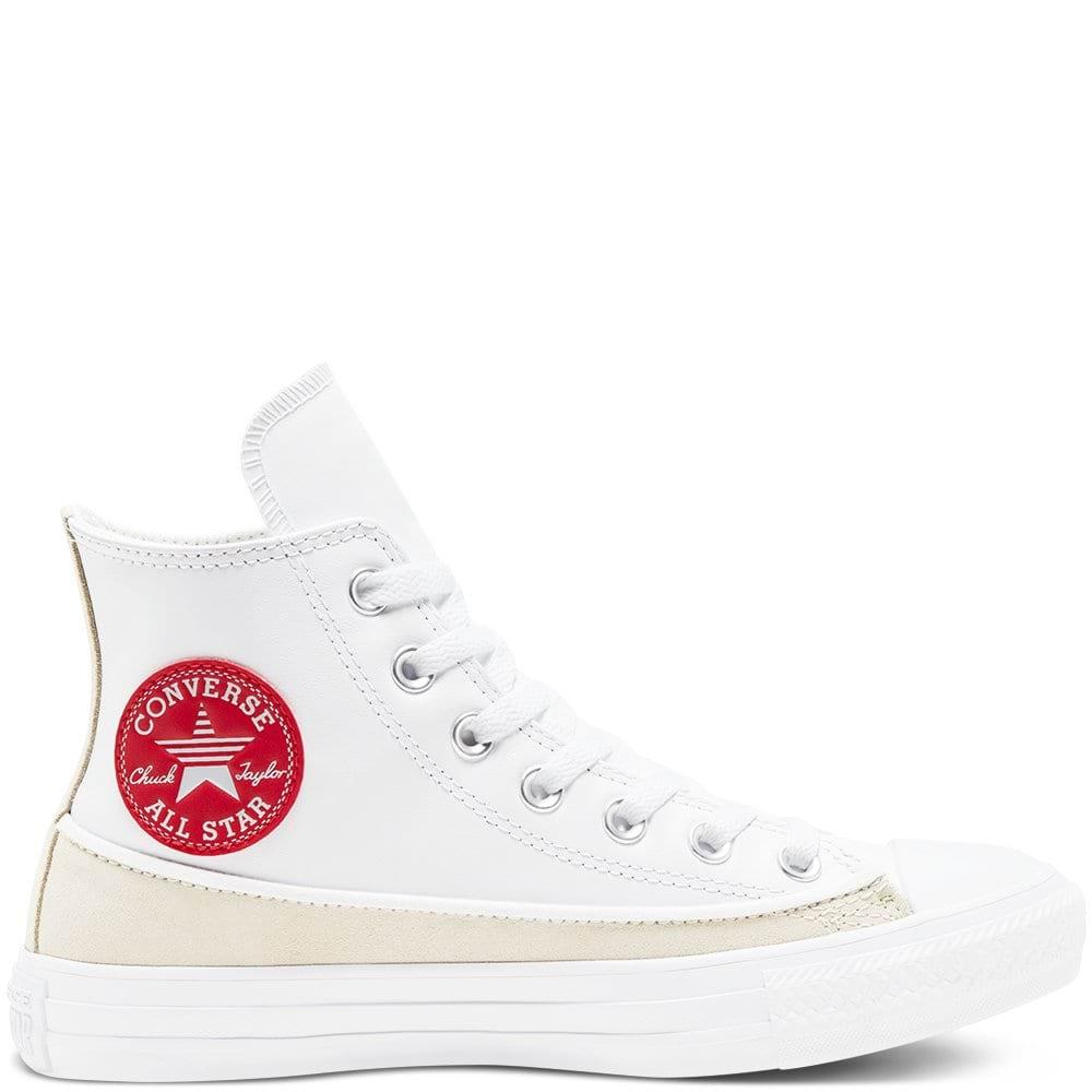 Buty typu high top Chuck Taylor All Star są niekwestionowaną ikoną codziennego stylu od 1917 roku. Nieco uwspółcześniliśmy klasyczny fason, łącząc w cholewce różne materiały: płótno, zamsz i skórę. Całość zdobi naszywka w jaskrawym kolorze z gwiazdą w paski na kostce. Odmieniony styl.