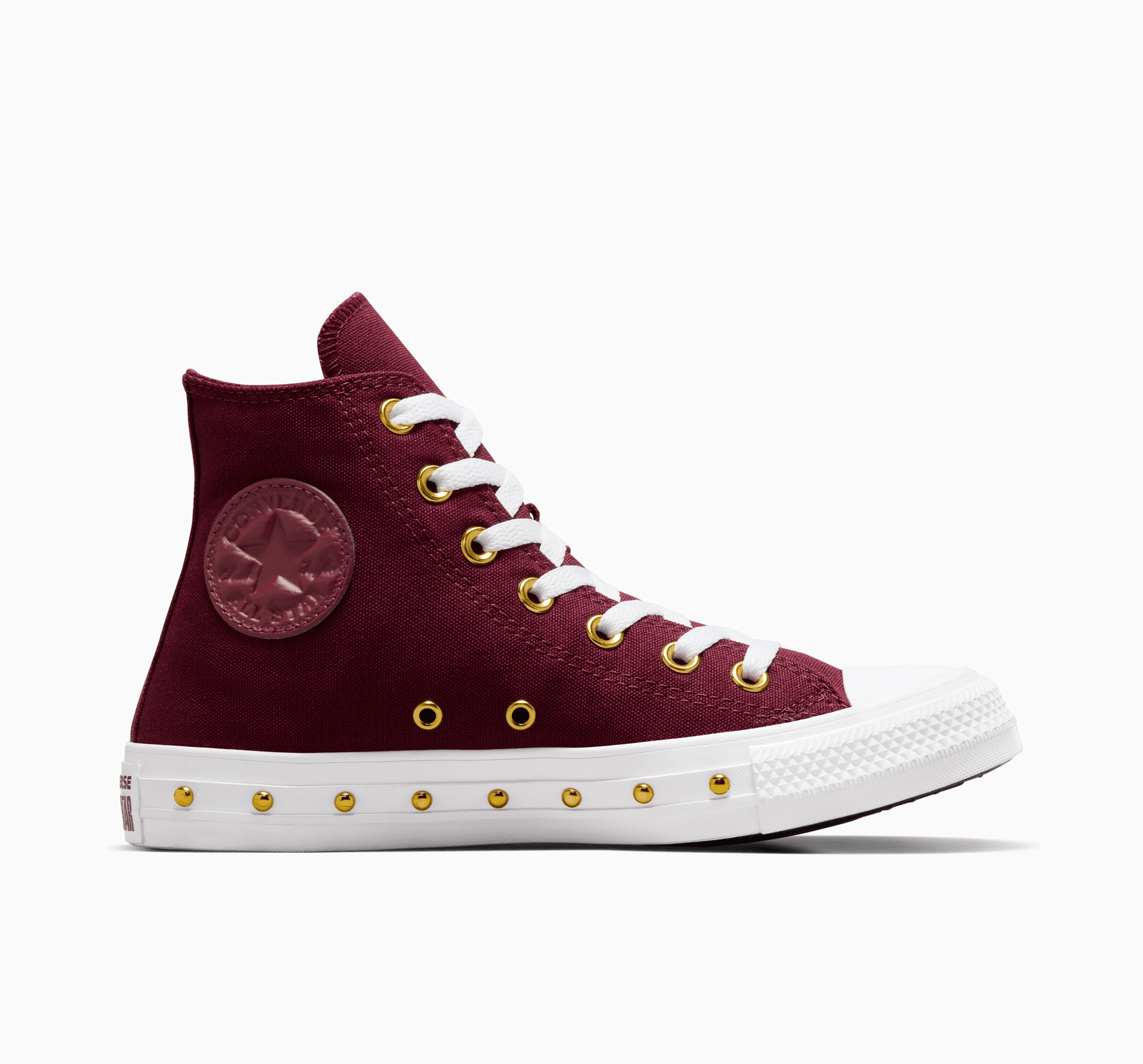 Signature Chuck Taylor style, with a little edge. The iconic high top you know and love gets a fresh look, with new trending colors and applied golden studs. Dress 'em up, dress 'em down—all that's missing is your unique styling.