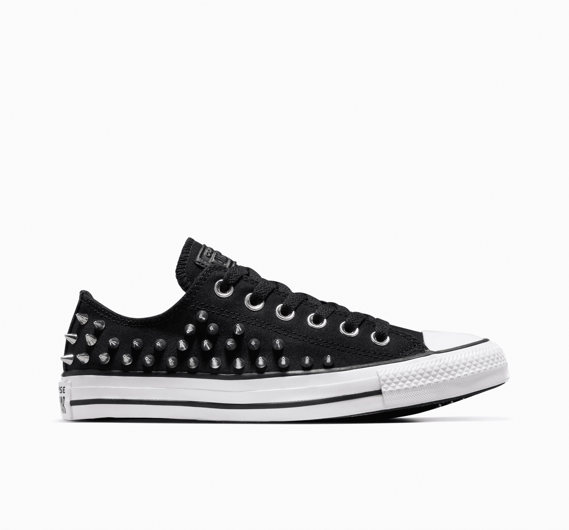 Uwolnij swoją punkową stronę w charakterystycznym stylu Chuck Taylor. Kultowa niska cholewka została unowocześniona za pomocą kolczastych ćwieków na całej powierzchni, aby uzyskać efektowny wygląd.