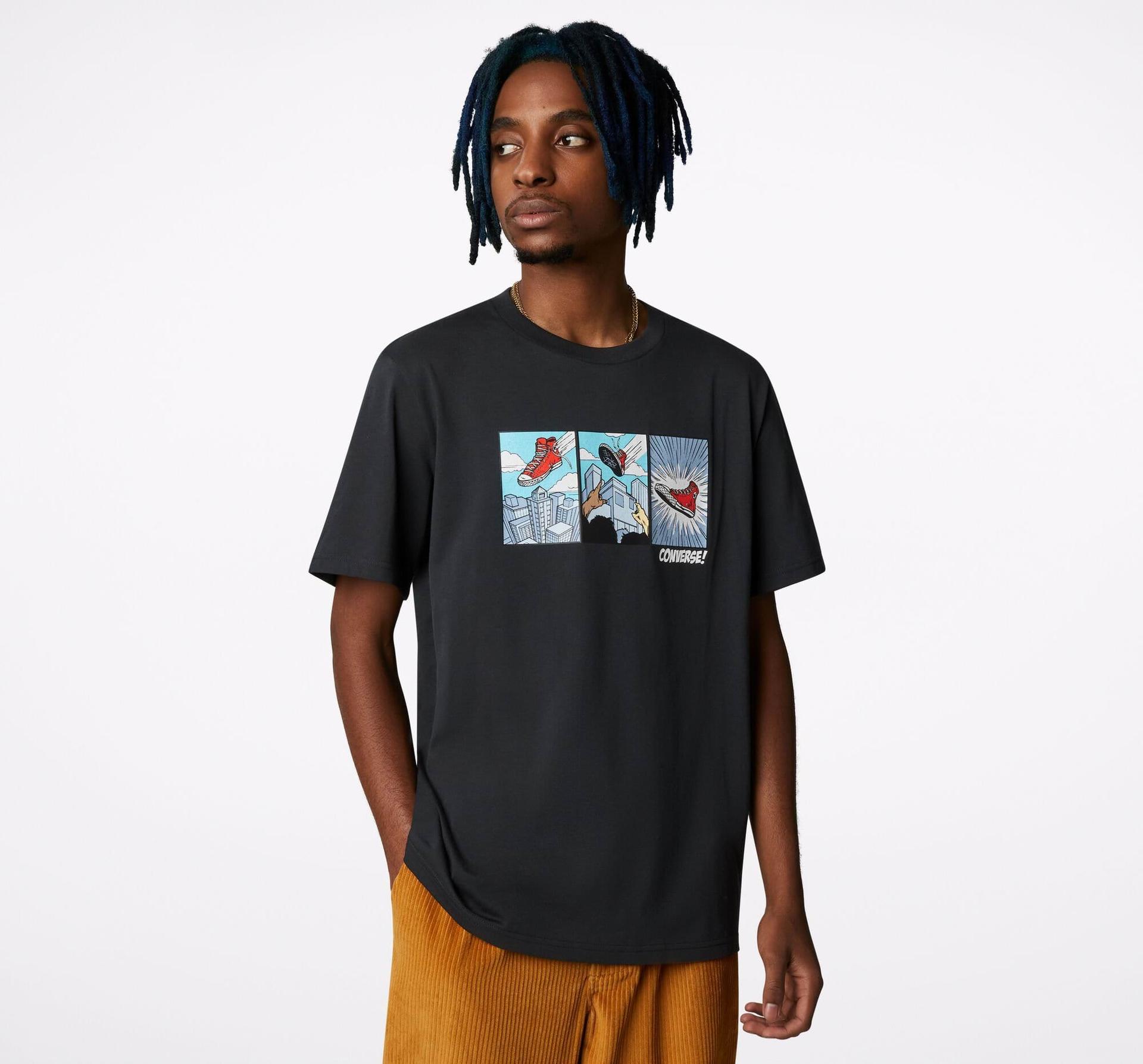 komiksowym wydaniu klasycznego t-shirta z nadrukiem graficznym. Komiksowy