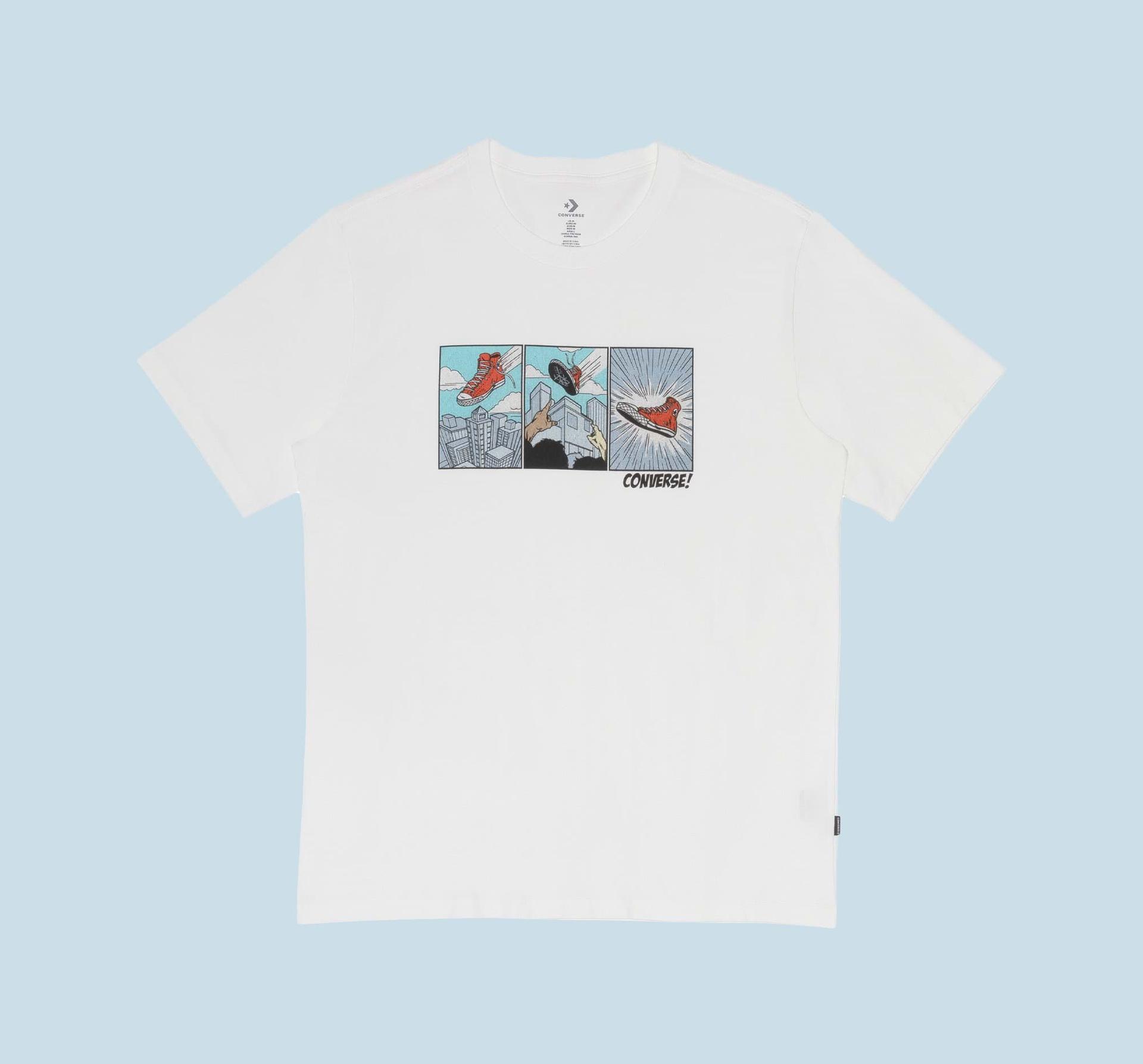 komiksowym wydaniu klasycznego t-shirta z nadrukiem graficznym. Komiksowy