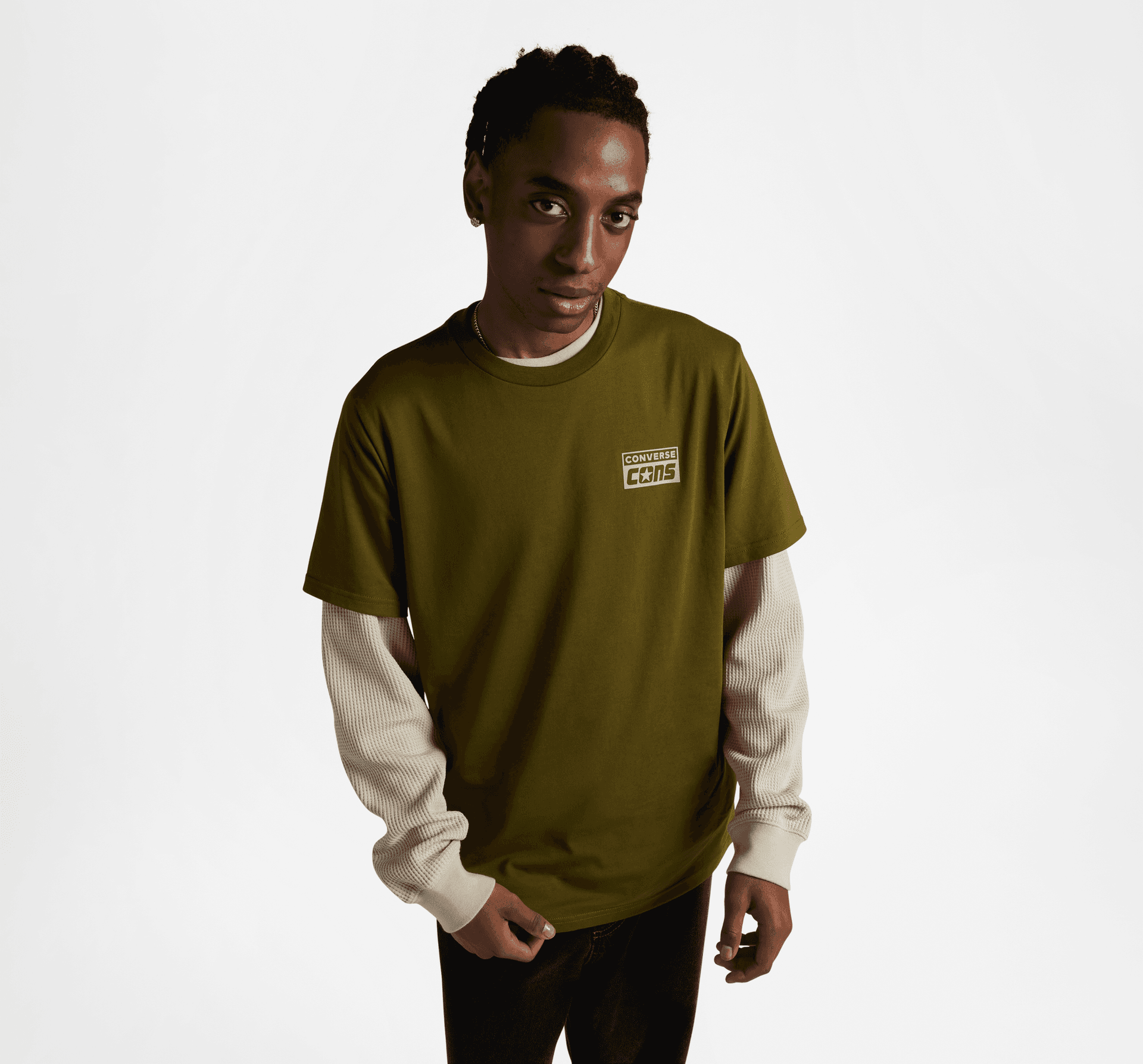 Swobodny styl jazdy na deskorolce. Ten t-shirt Converse CONS zaprojektowano do noszenia na co dzień. Koszulka wyposażona została w klasyczny, zaokrąglony kołnierzyk wykończony elastycznym, prążkowanym ściągaczem, krótki rękaw i wygodny, bawełniany materiał dżersej.
