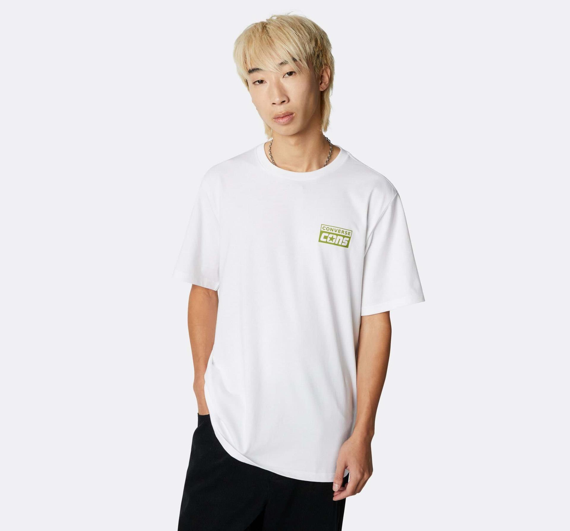 Swobodny styl do jazdy na deskorolce. Koszulka Converse z logiem CONS jest