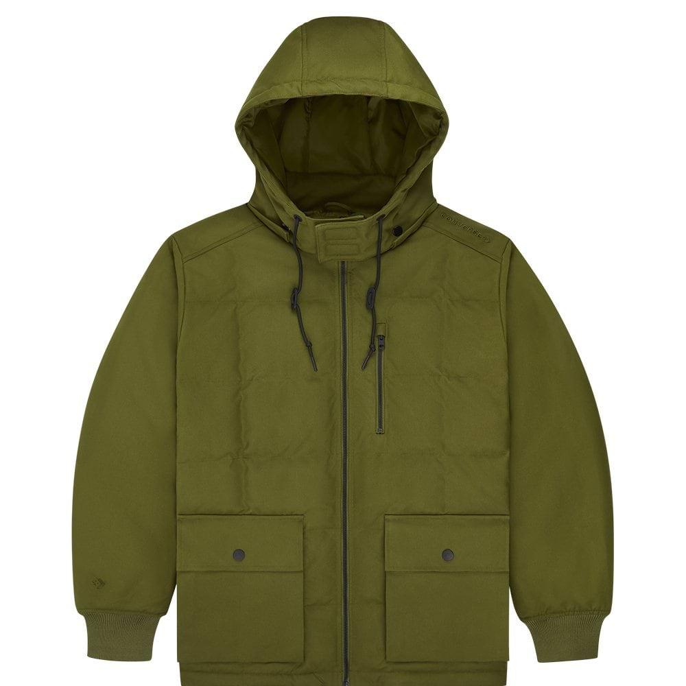 Konkretne ciepło w naszej średniej długości kurtce zapewnia moc wypełnienia 550. Dodatki takie jak odpinany kaptur, mankiety ze ściągaczemj i kieszenie z klapkami na zatrzaski z dwustronnym wejściem są gotowe na wszystko. Hardcore.