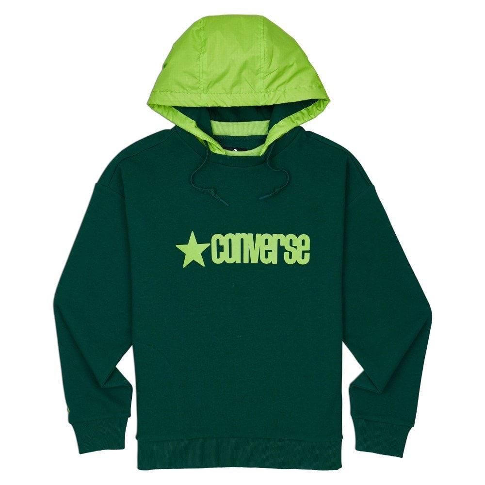 Uwolnij się. Odpinany kaptur daje wyjątkowe możliwości personalizacji. Kaptur typu rip-stop przypina się do karczka tej bluzy z dzianiny o średniej gramaturze na zamek błyskawiczny. Kaptur w jaskrawym kolorze Converse tworzy z napisem na klatce piersiowej harmonijną całość. W Twoim stylu.