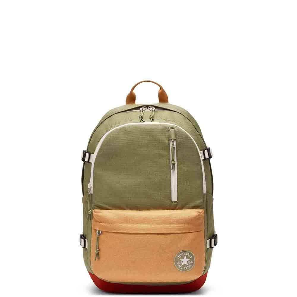 Plecak Straight Edge, zainspirowany linią Converse Mountain Club, zapewnia niezwykłą trwałość. Ma trzy komory, w tym kieszeń na urządzenia przenośne podszytą trykotem oraz zapewniający odpowiednią ochronę powlekany zamek. Jest ozdobiony wytrzymałymi detalami. Dzięki wyścielanej kieszeni na laptopa, profilowanym paskom oraz ergonomicznej tylnej wstawce z siateczki airmesh możesz go zabrać ze sobą wszędzie.