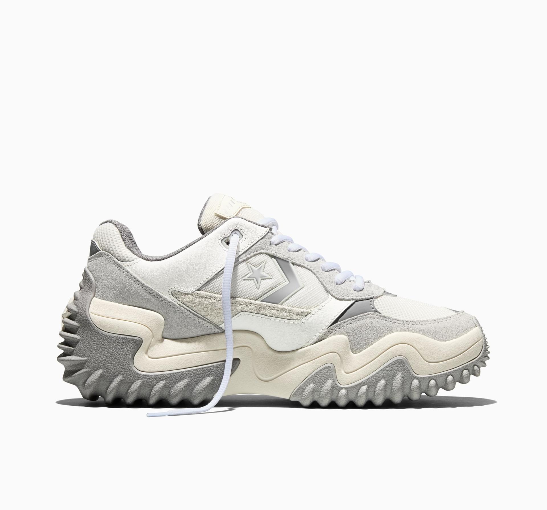 - Maksymalistyczna, gruba podeszwa zewnętrzna podkreśla ruch do przodu.