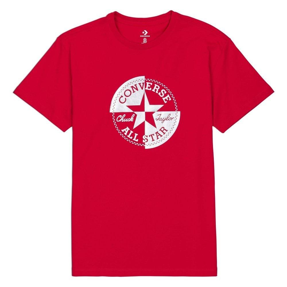T-shirt Converse Rivalry Relaxed Graphic wynosi sportowy styl poza boisko. Z przodu pośrodku znajduje się naszywka Chuck Taylor All Star o metalicznym wyglądzie. Naszywka jest podzielona na sekcje w kontrastujących kolorach. Jaka konkurencja?