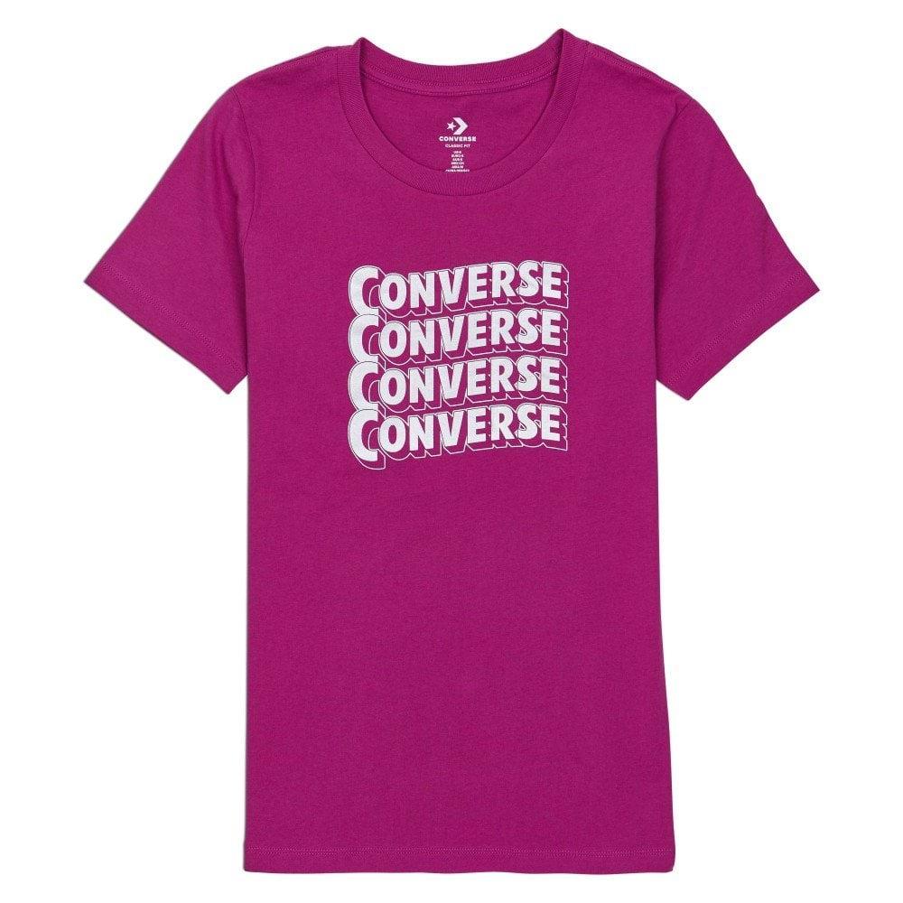 POWTÓRZENIA. Raz to za mało. Nasz napis Converse powtarza się w różnych kolorach stylu na tej koszulce inspirowanej stylem retro. Ta prosta koszulka podstawowa z bawełnianej dzianiny z krótkim rękawem i okrągłym wycięciem pod szyją wyróżnia się na tle innych.