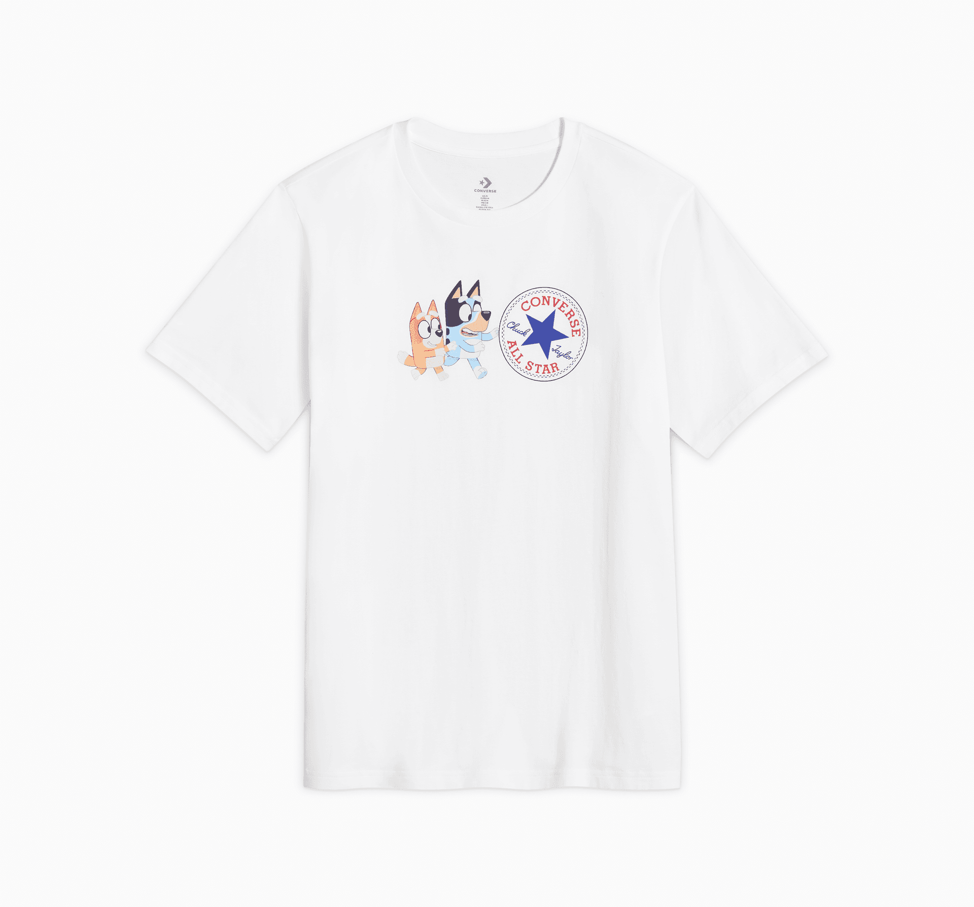 Świętuj siłę kreatywnej zabawy z limitowaną koszulką Bluey, z Bluey i Bingo oraz naszywką Chuck Taylor All Star.