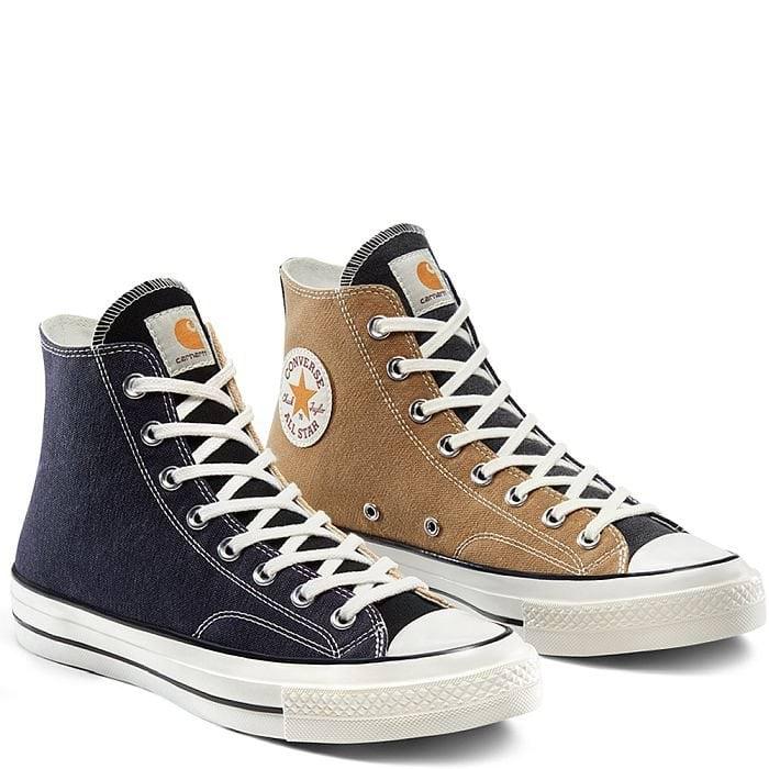 Converse i Carhartt WIP to dwie legendy streetwearu, które nie po raz pierwszy wypuszczają wspólną kolekcję. Tysiąc kultowych kurtek, spodni i kombinezonów od Carhartt pochodzących z brytyjskiego sklepu Vintage – Beyond Retro podzielono na trzy linie kolorystyczne – Navy, Black i Brown. Następnie pocięto je na trzy panele tworzące cholewkę legendarnego buta – Chuck 70.