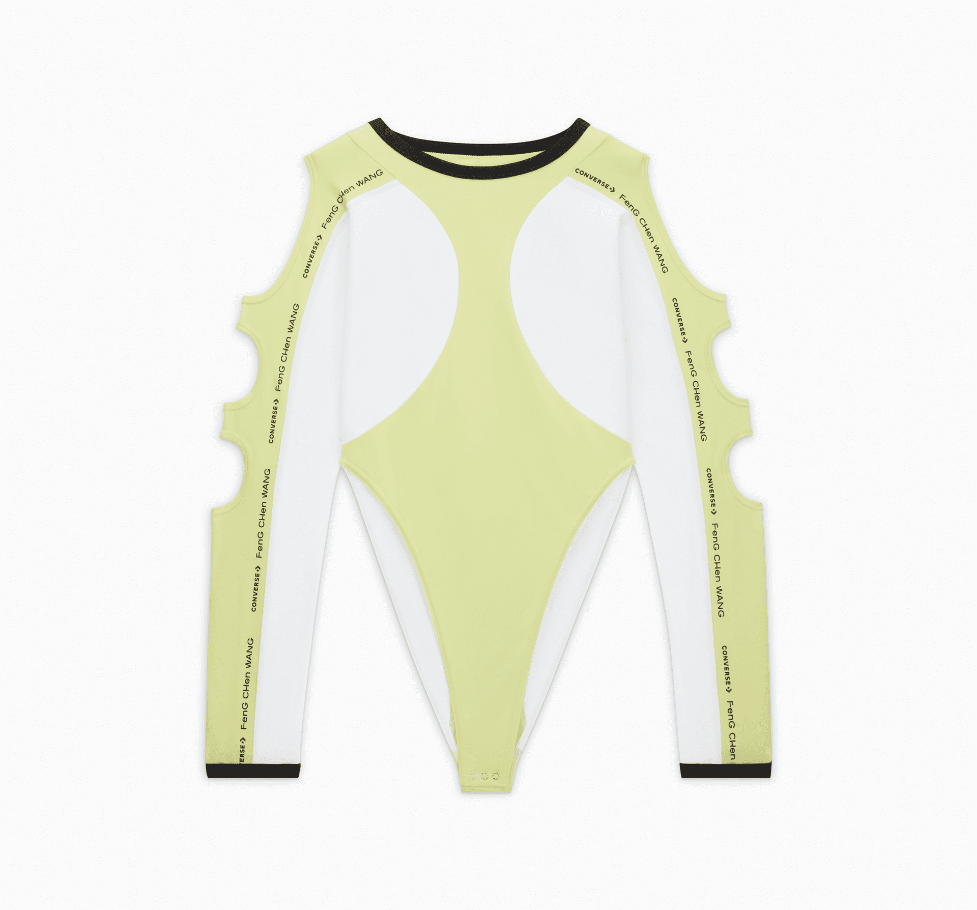 Subversive sport: Influential Chinese designer Feng Chen Wang is back with a new collection of Converse apparel, reinterpreting classic garments through her signature conceptual lens. Her deconstructive approach transforms modern staples into distinctive, one-of-a kind pieces. This limited-edition 4-way stretch top features a unique two-tone design with bold cut outs and raised silicone wordmarks down each sleeve.