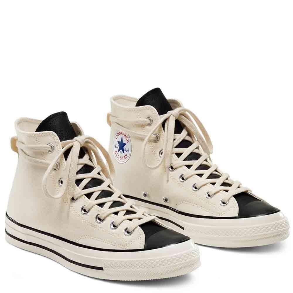 W tej limitowanej edycji, założyciel Fear of God, Jerry Lorenzo, prezentuje wyrafinowane podejście do modelu Chuck 70 poprzez swoją linię ESSENTIALS. Wzrok przykuwają nieoczywiste detale, jak sznurowadła owijane wokół kostki, język wykonany z delikatnej skóry i logo ESSENTIALS na pięcie.