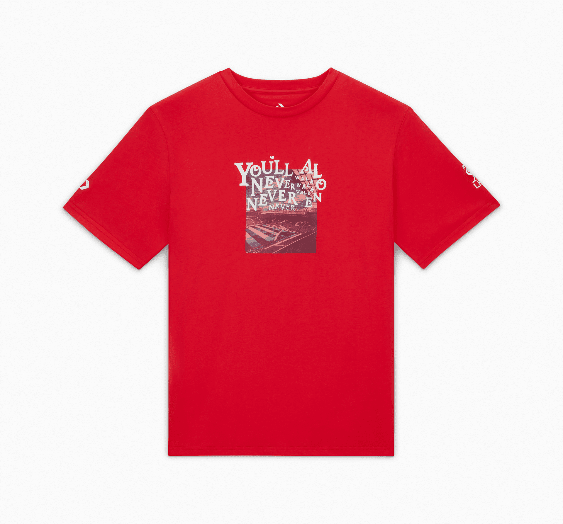 Converse i Liverpool FC łączą siły w drugiej limitowanej kolekcji, która celebruje historię klubu i wspiera jego przyszłość. Koszulka z kultowym hymnem LFC "You'll Never Walk Alone" na tle grafiki z Anfield reprezentuje kibiców Liverpoolu.