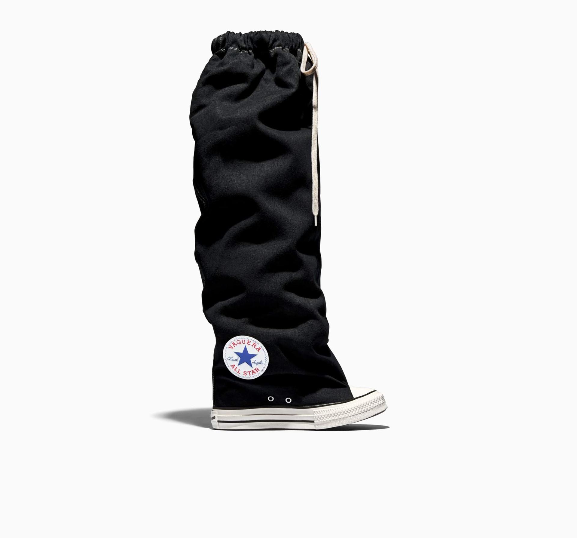 Połączenie ikon wprowadza buntowniczego ducha Vaquery i Cortisy Star do stylu Converse. Wysoka cholewka z woskowanego płótna i wewnętrzna podeszwa typu Chelsea nadają modelowi All Star prowokacyjny, nowy charakter. Luźniejszy, oversize’owy krój z górnym sznurowaniem i elastycznymi wstawkami pozwala dopasować styl na wiele sposobów. Zasznurowane w Chuck Taylor All Star XXXHi Slouch Wedge od Vaquera, staną się odważnym modowym manifestem.