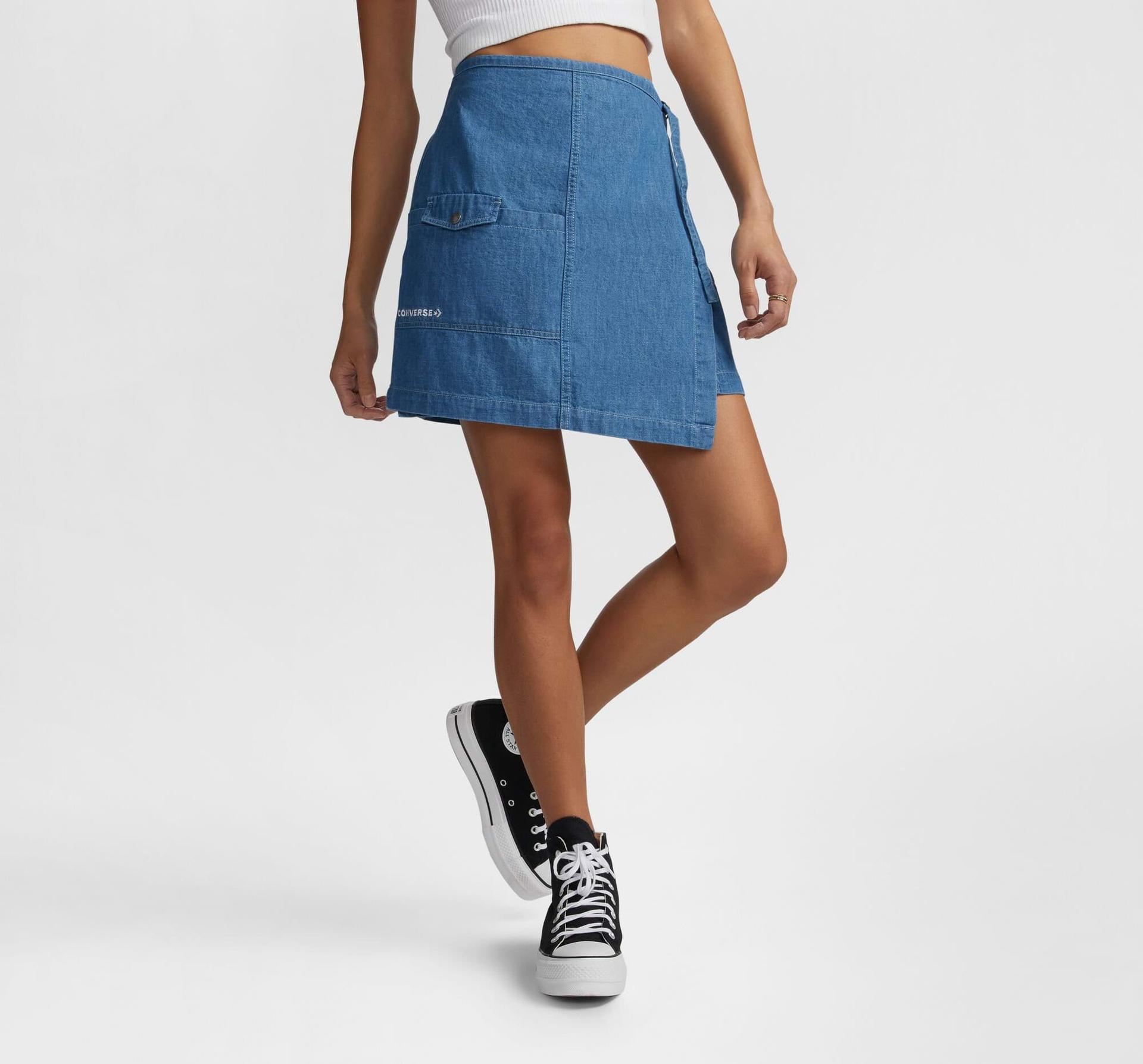 Ta spódnica to idealne połączenie funkcjonalności i stylu - ma wszystko, czego potrzebujesz. Charakterystyczny, owijany wokół bioder fason z denimu sprawia, że jest to nowoczesna wersja letniej klasyki. Praktyczne detale, takie jak zapięcie na klamrę i wiele kieszeni, dodają praktycznego charakteru, nie rezygnując z modnego wyglądu.