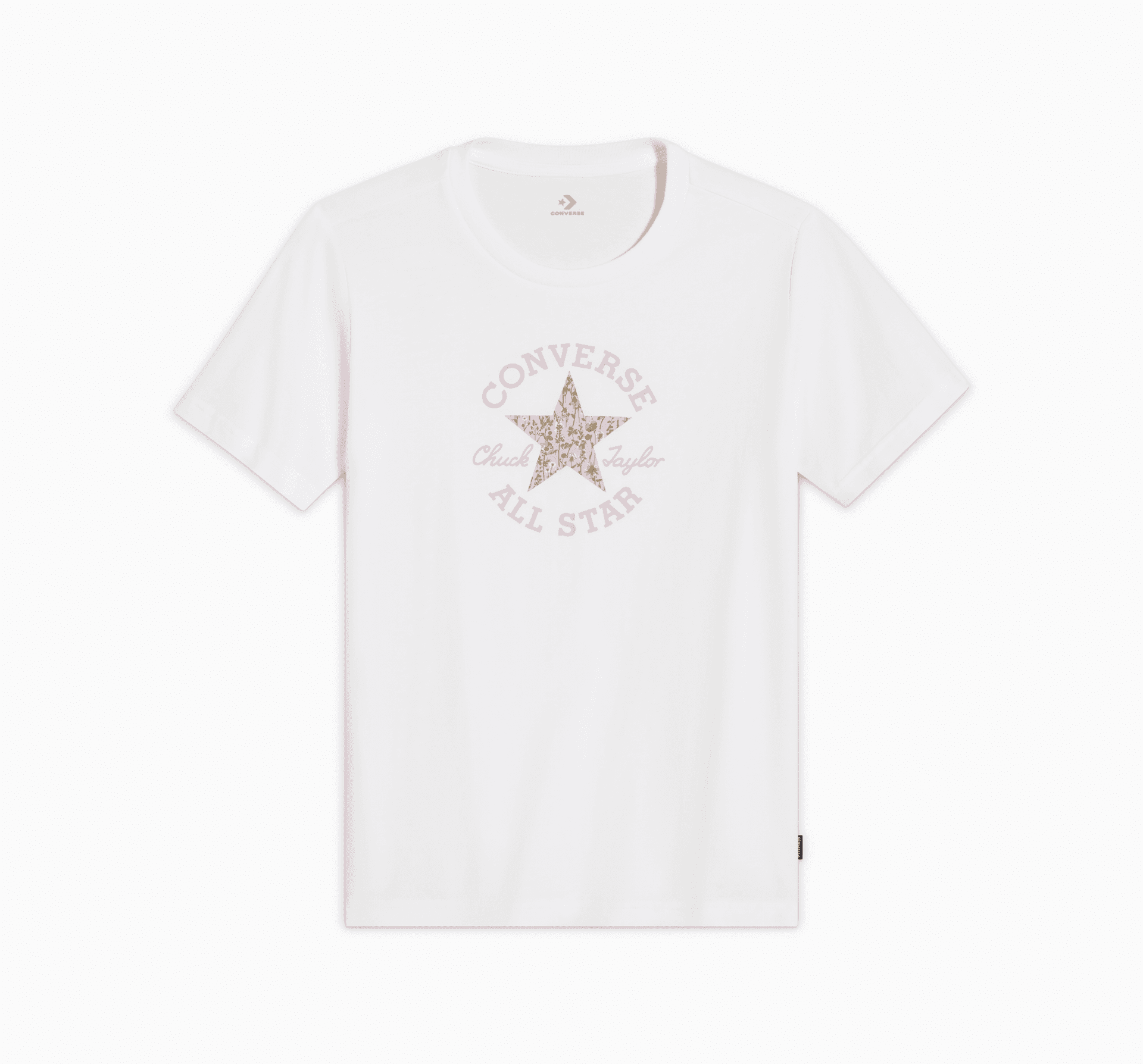 - Grafika naszywki All Star z wewnętrznymi kwiatami wprowadza słoneczny nastrój