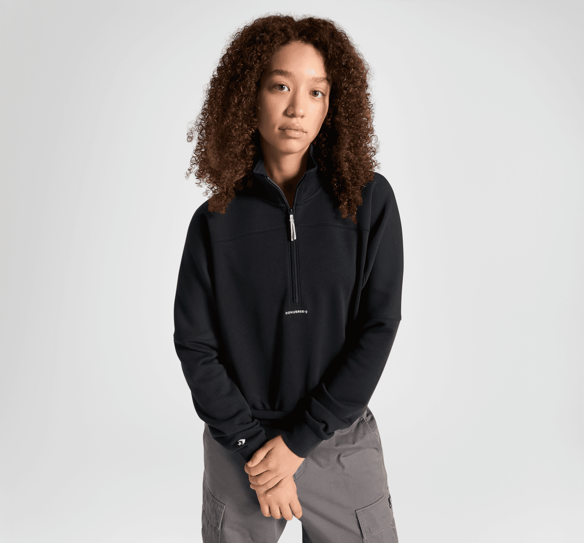 - Klasyczne logo Star Chevron na rękawie i napis Converse na środku z przodu