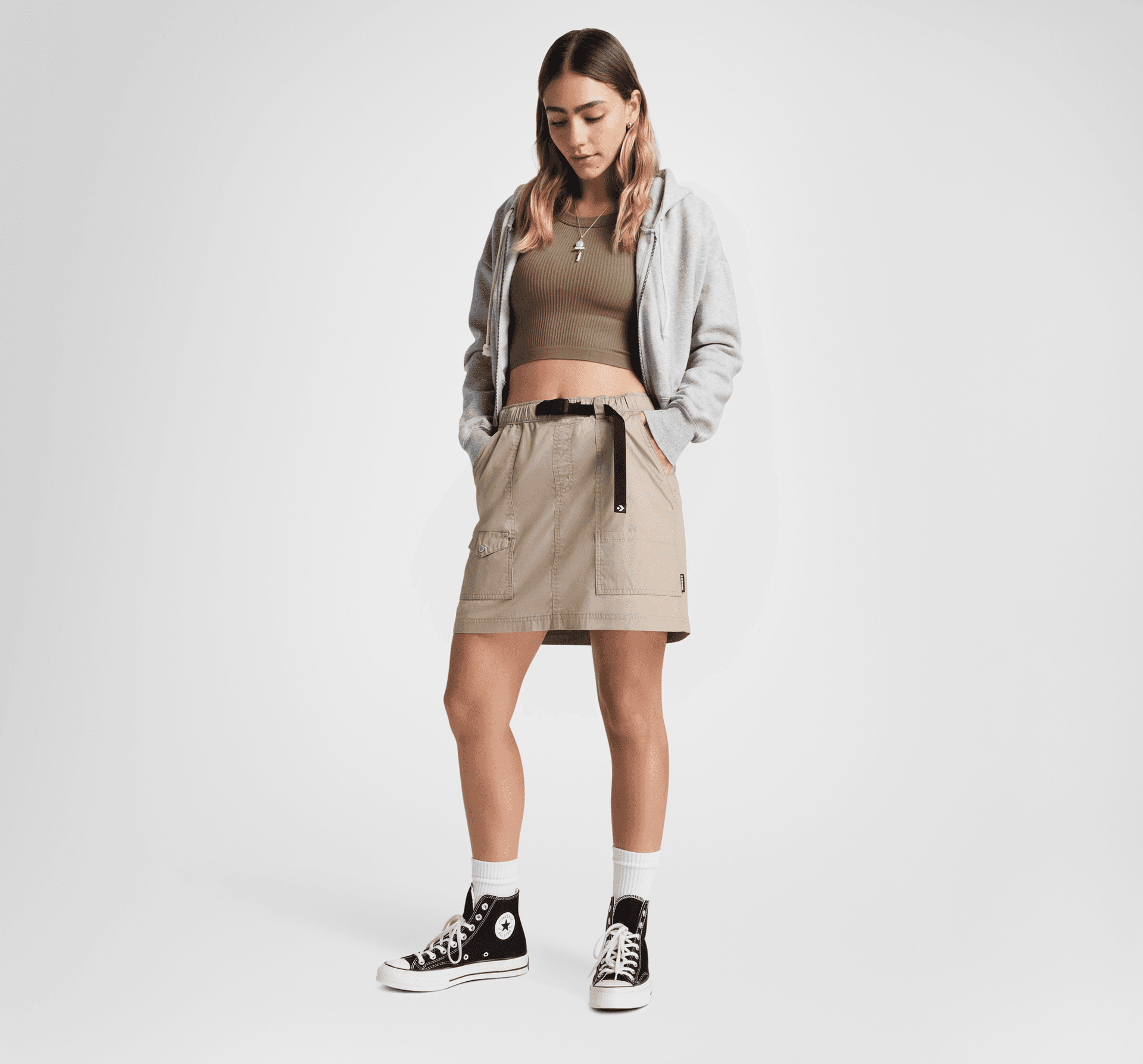 Ta mini spódniczka zapewnia idealną równowagę między pracą a zabawą. Mnóstwo kieszeni, miękki materiał i elastyczna talia zapewniają wygodę i stylowy wygląd.