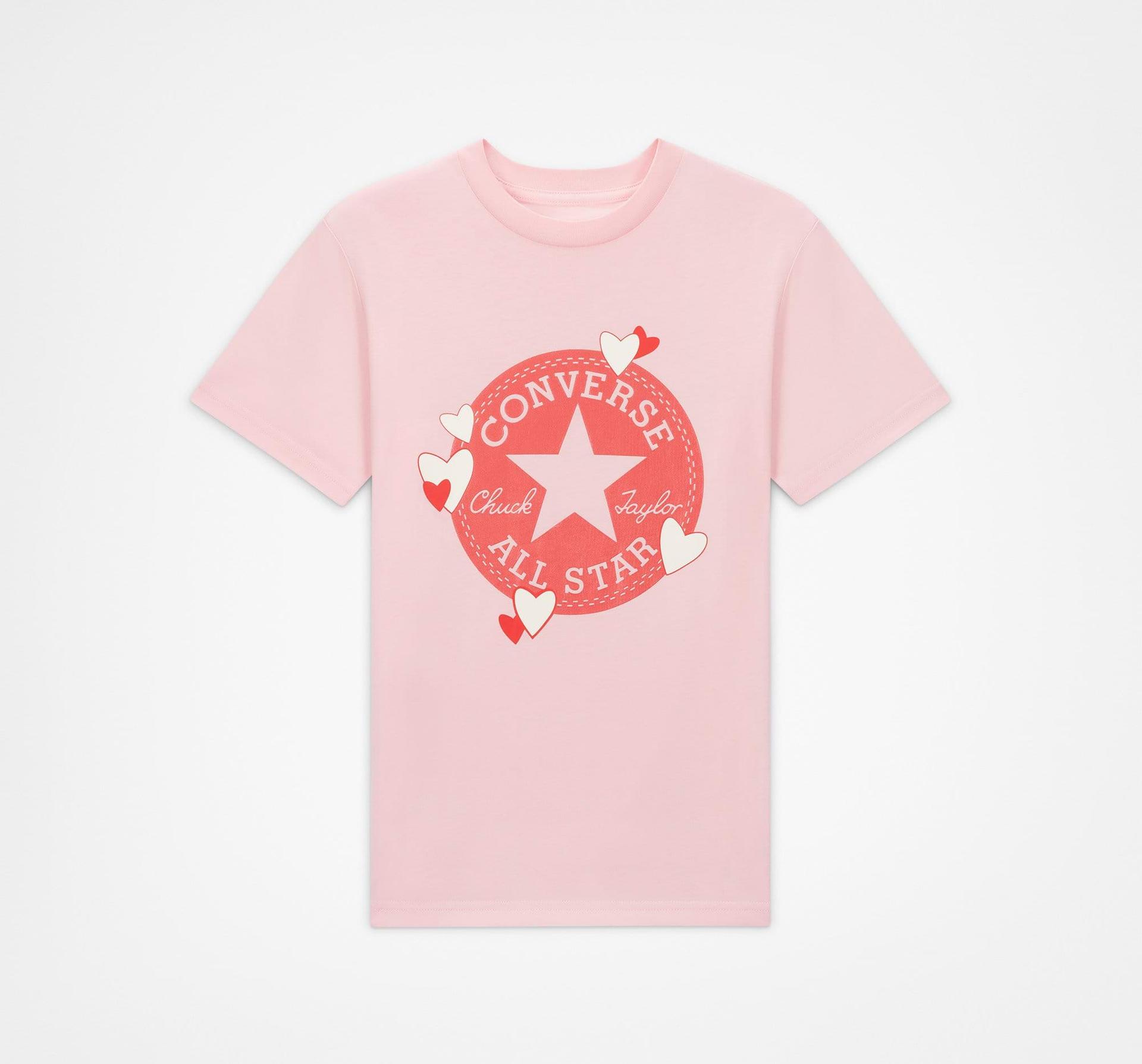 naszywce Chuck pokrytej sercami. Ponadto klasyczny okrągły dekolt oznacza,