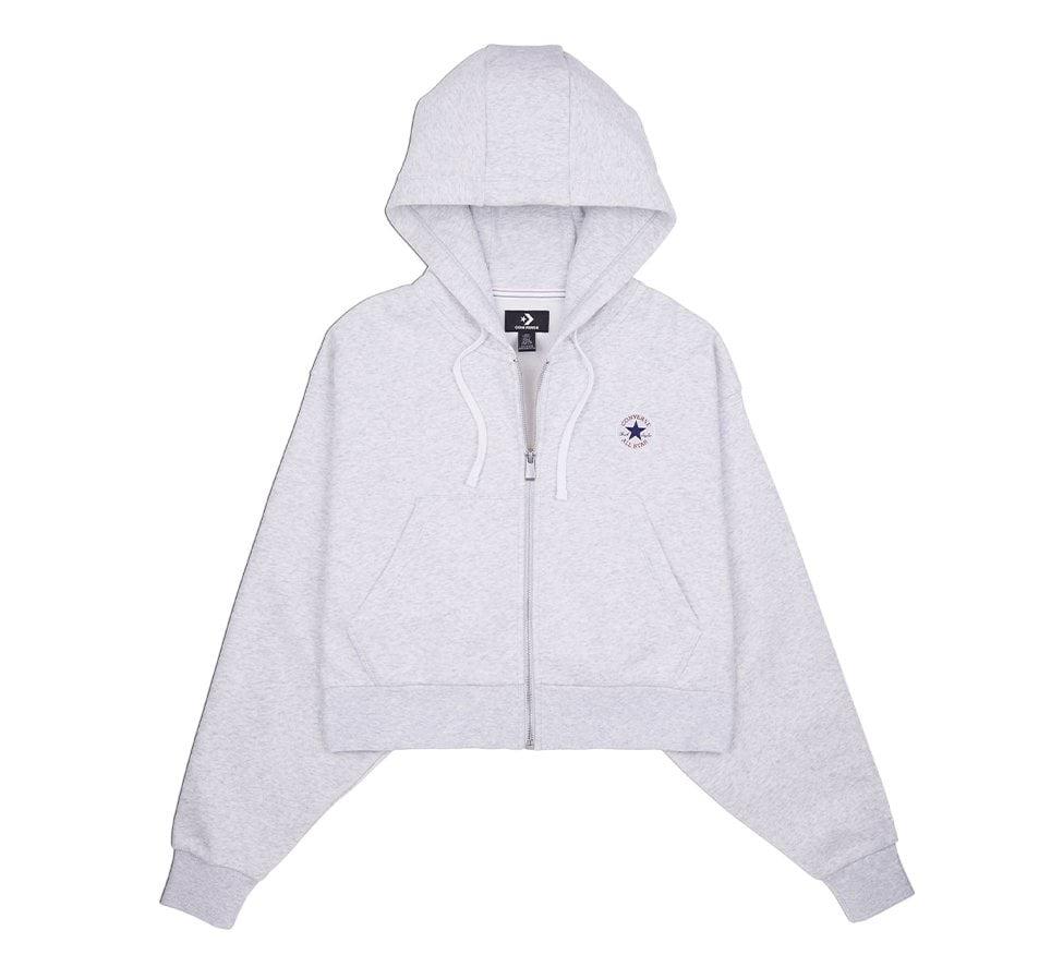 - Lekko skrócona bluza z kapturem zapinana na zamek