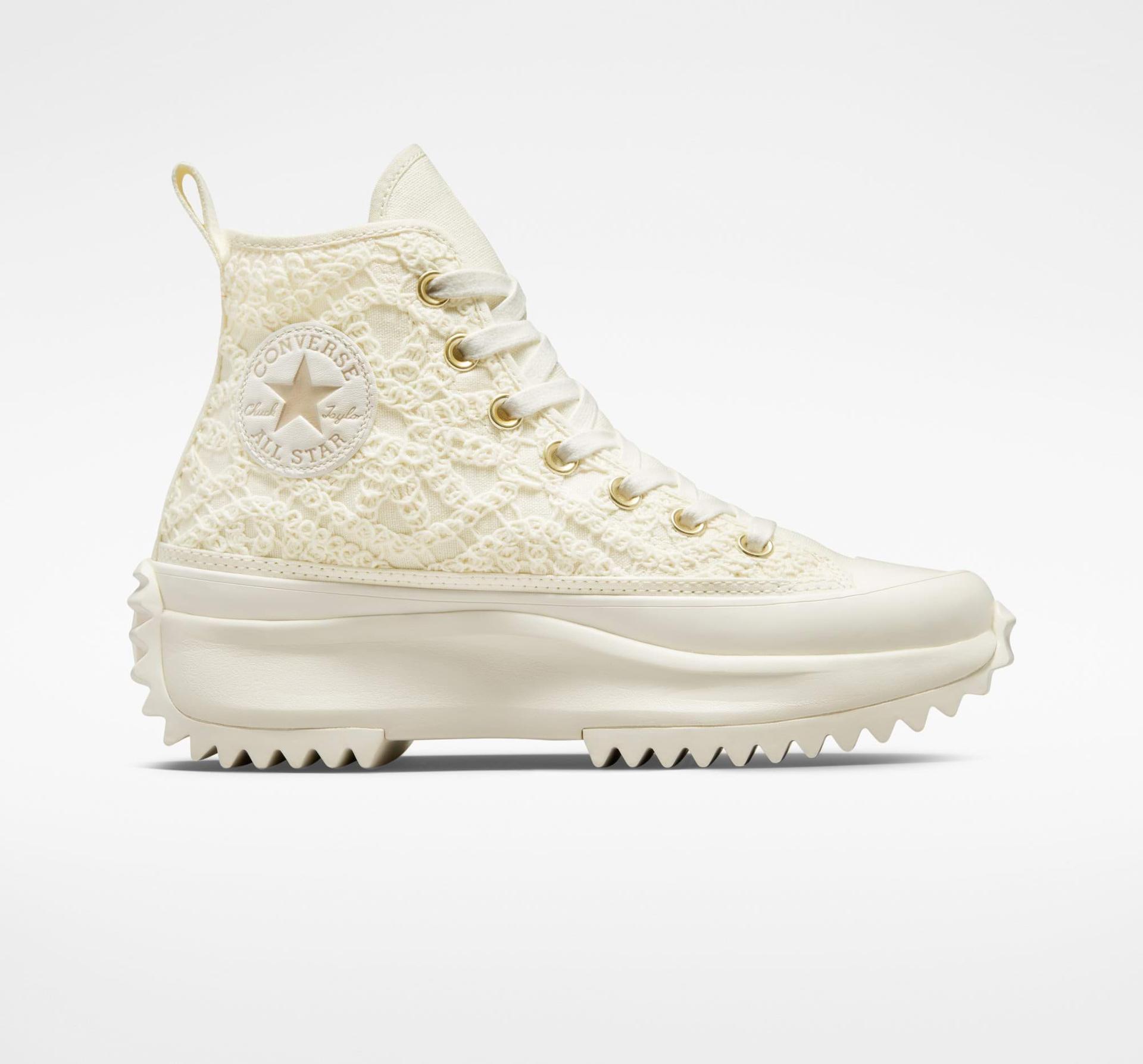 W sam raz na sezon festiwali powraca platforma Run Star Hike, w nowej odsłonie inspirowanej klimatem boho. Wysoka cholewka wykonana z szydełkowej bawełny posiada subtelne złote akcenty, a podwyższona podeszwa gwarantuje, że zawsze będziesz wyglądać jak VIP.