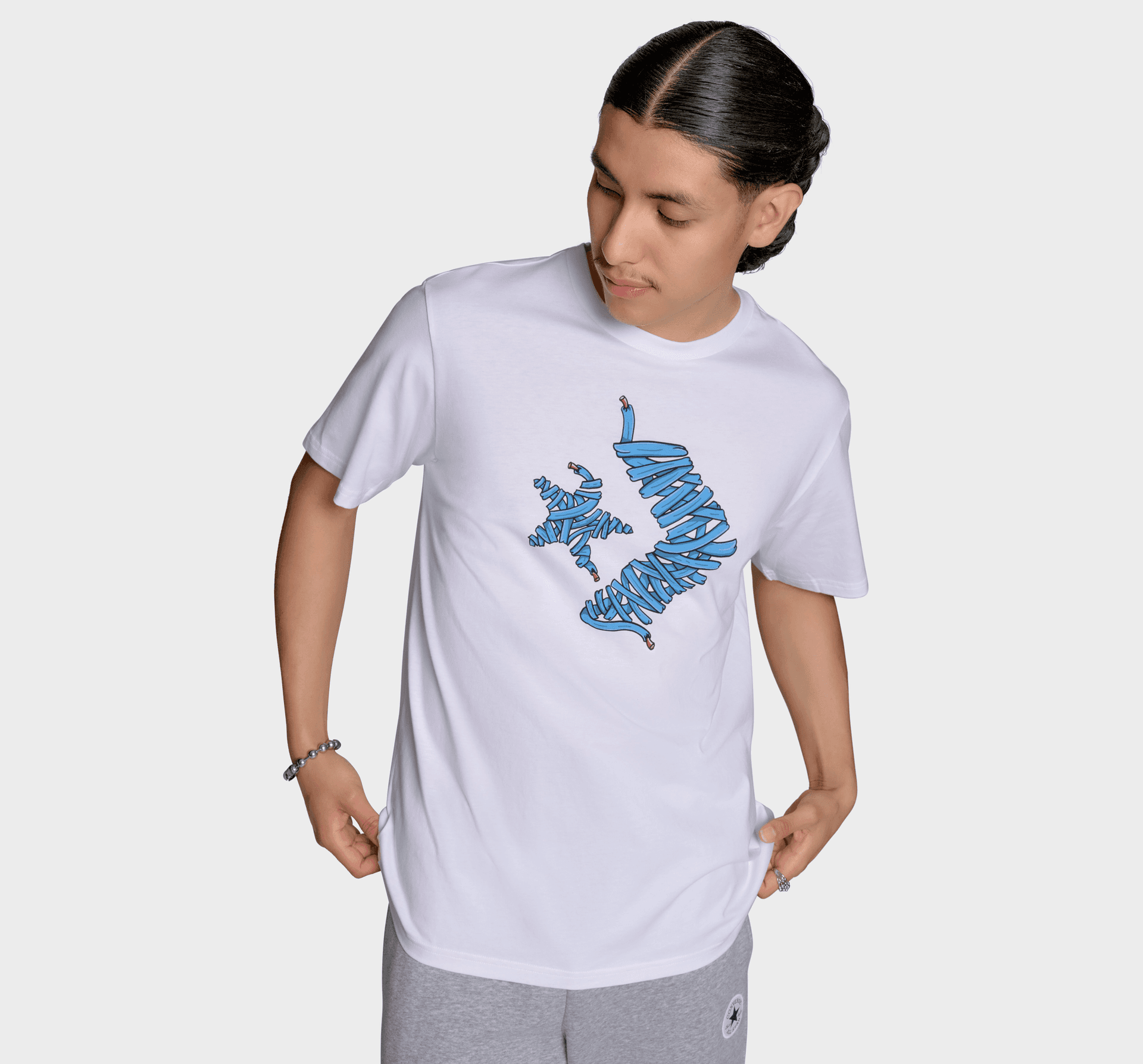 A go-to with a twist, this cotton tee features a Star Chevron graphic made of shoelaces to rep the Converse legacy—-perfect for every day wear with a playful edge.