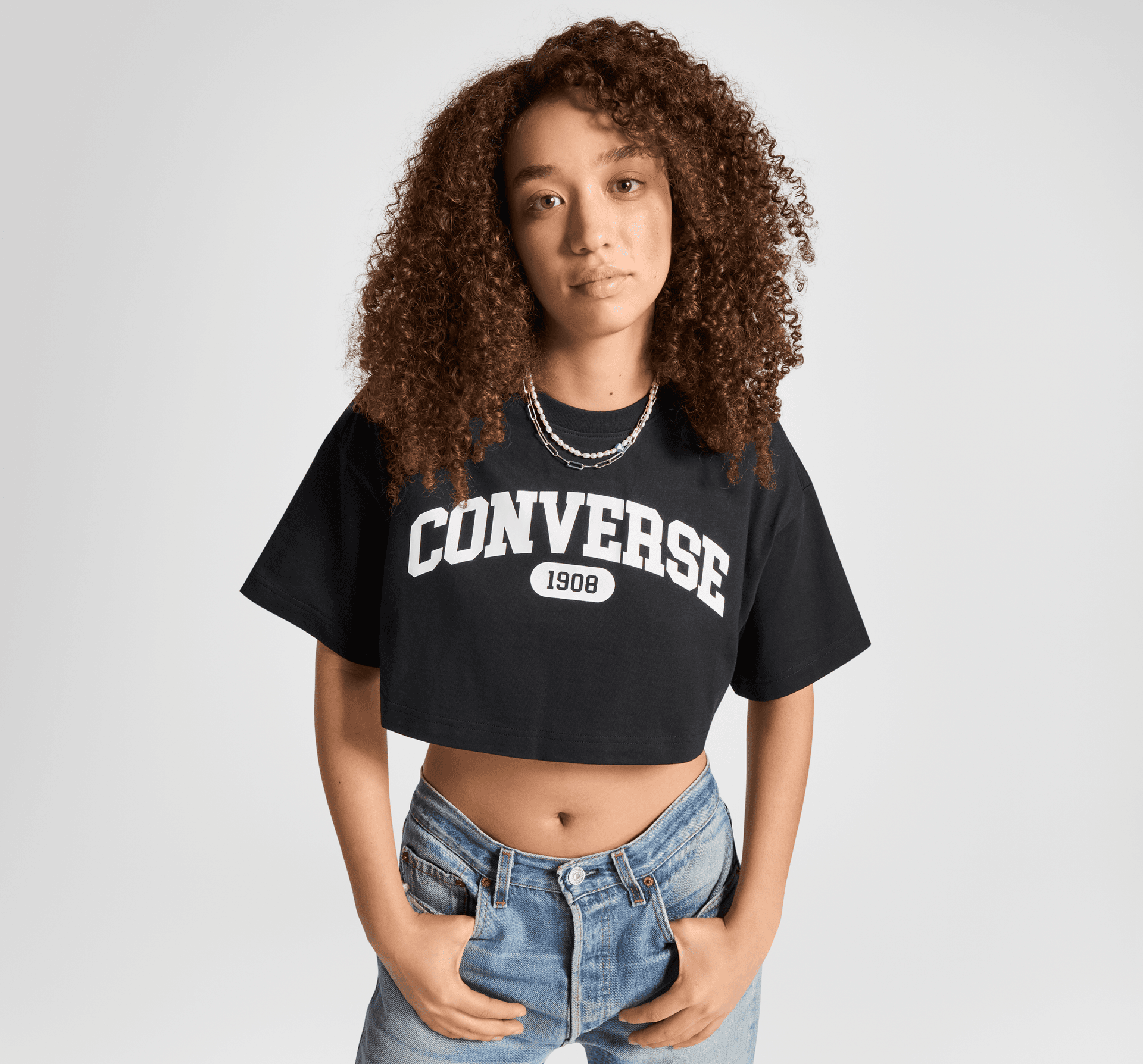Ta oversizowa koszulka serwuje dawkę nostalgii. Z grafiką Converse 1908 z przodu, Twój look doskonale komponuje się z Twoimi ulubionymi klasycznymi trampkami Chuck.