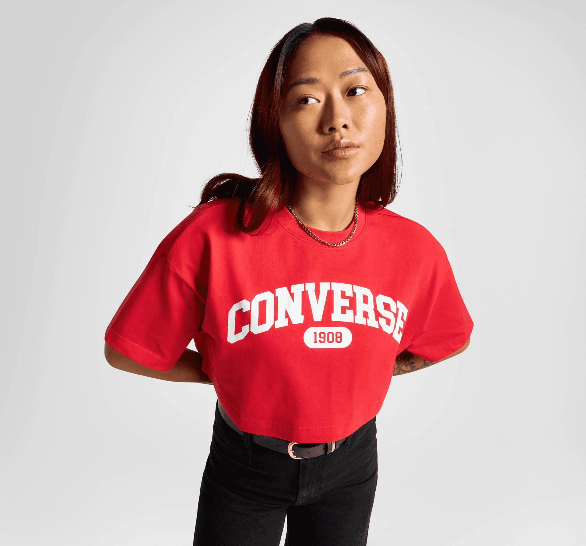 Ta oversizowa koszulka serwuje dawkę nostalgii. Z grafiką Converse 1908 z przodu, Twój look doskonale komponuje się z Twoimi ulubionymi klasycznymi trampkami Chuck.