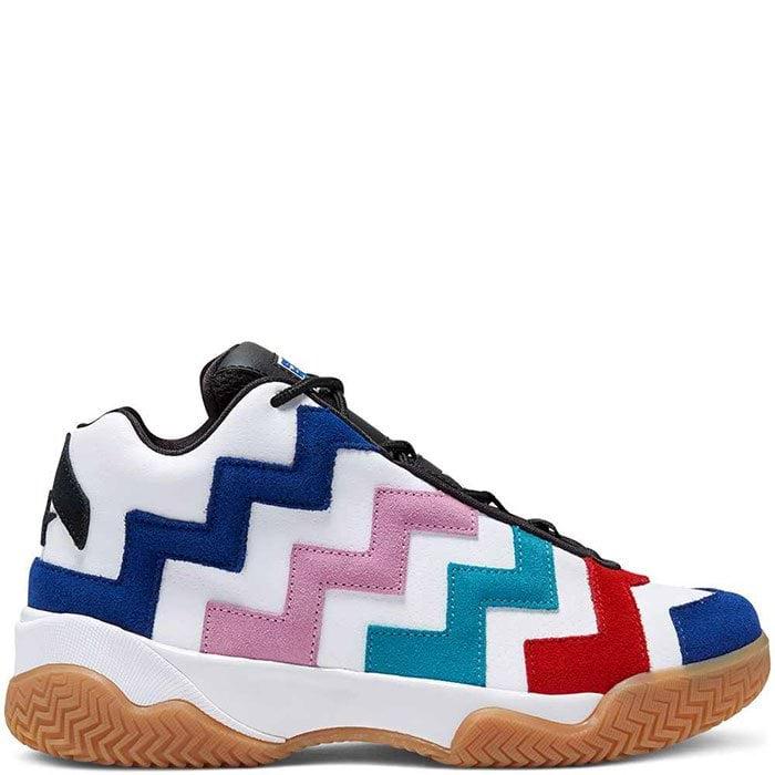 Kultowe buty powstały z inspiracji wyrazistymi wzorami noszonymi na boiskach w latach 90. Cholewkę o średnim profilu ozdobił więc archiwalny nadruk z motywem szewronu w radosnych kolorach.