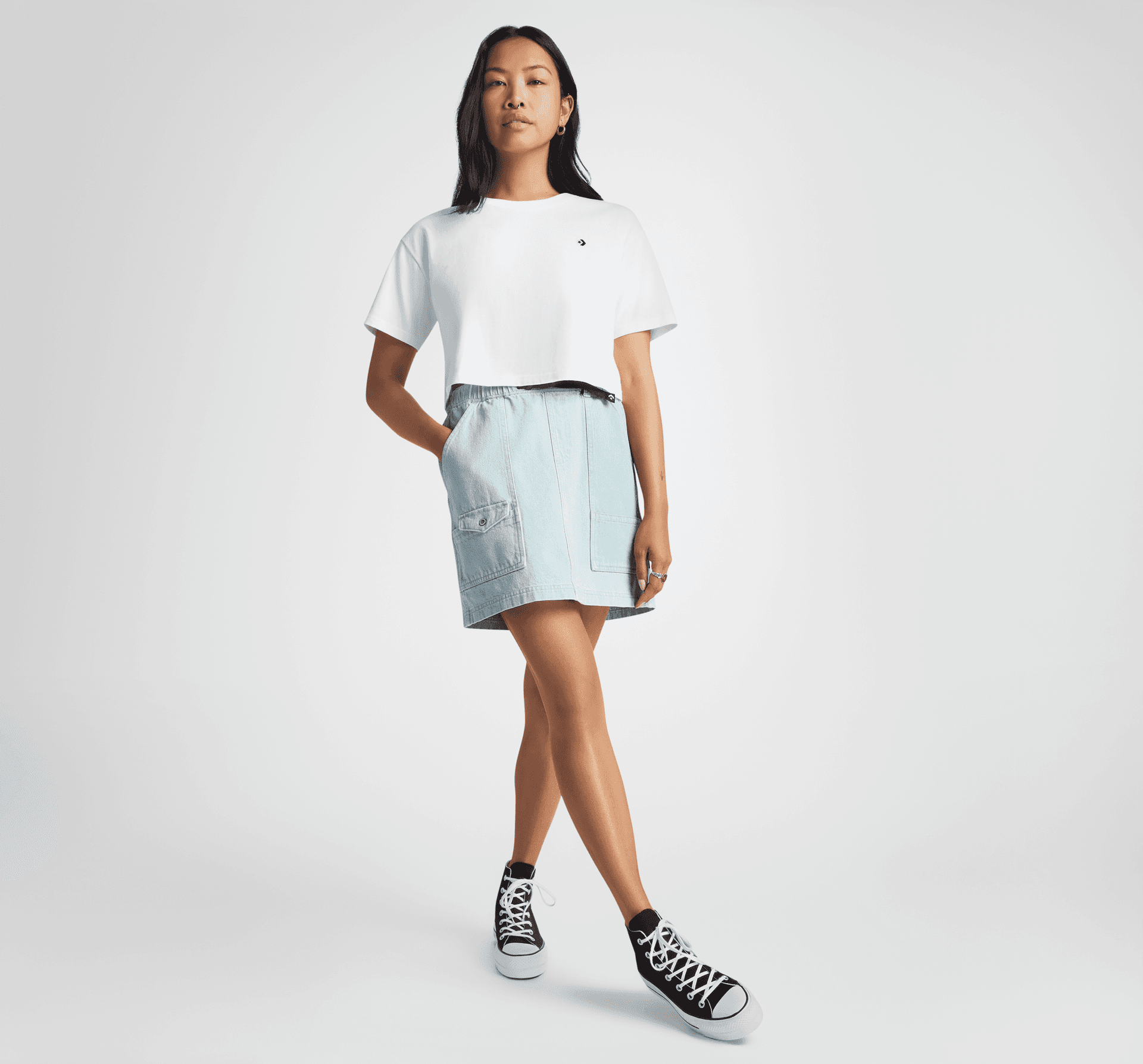 Ta mini spódniczka zapewnia idealną równowagę między pracą a zabawą. Wytrzymały dżinsowy materiał i elastyczna talia zapewniają wygodę i modny wygląd.