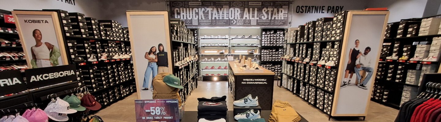 Converse Factory Outlet w Luboniu to miejsce, gdzie styl spotyka się z okazją. W naszym salonie znajdziesz szeroki wybór obuwia, odzieży i akcesoriów Converse – od kultowych modeli po wyjątkowe perełki, które trudno znaleźć gdzie indziej. To idealna przestrzeń dla tych, którzy chcą wyrazić siebie i uzupełnić swoją garderobę o oryginalne produkty w atrakcyjnych cenach.