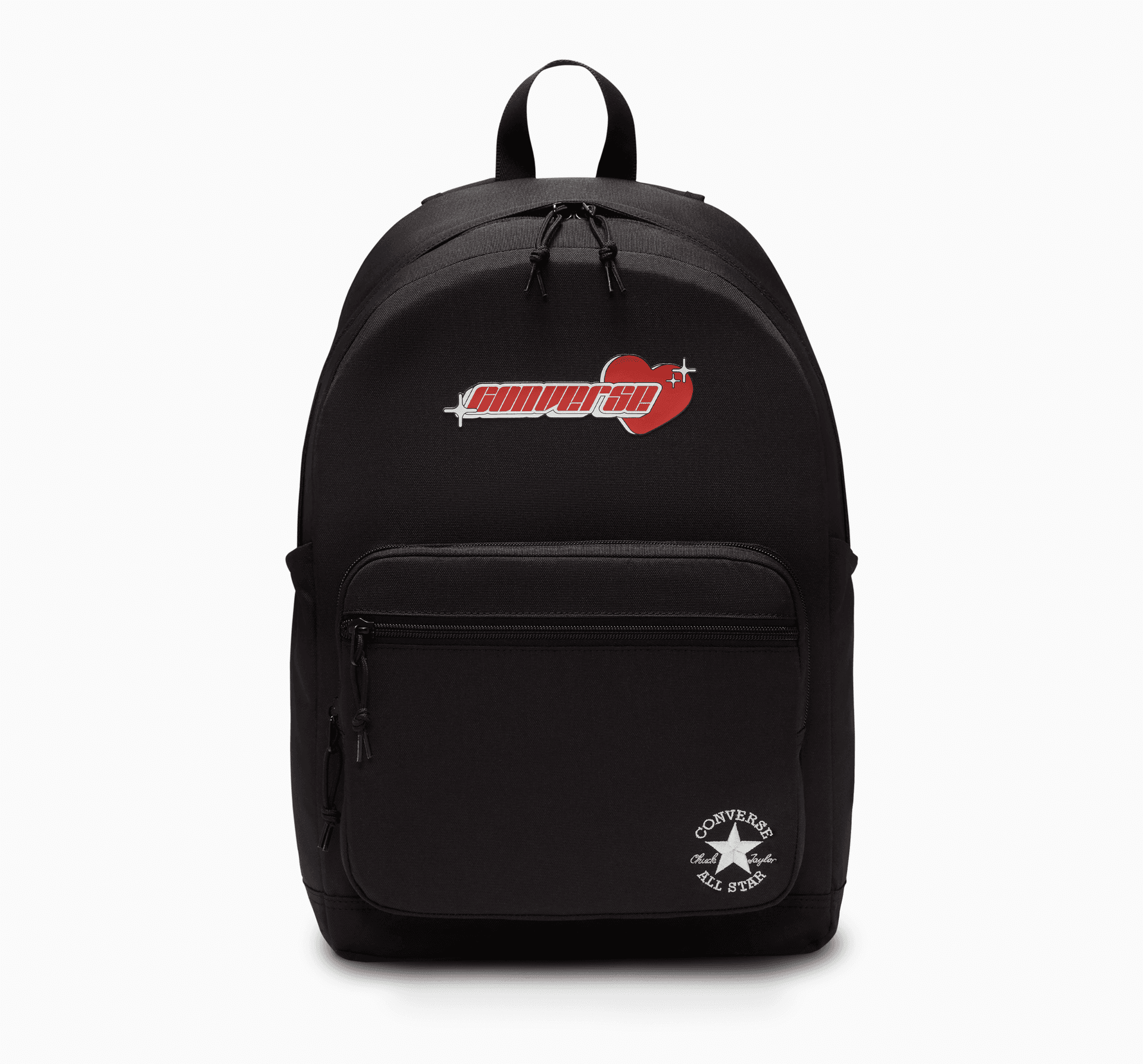 Warning: You just might fall in love with this backpack. Made with storage and style in mind and completed with a Converse heart graphic, whats not to love?
