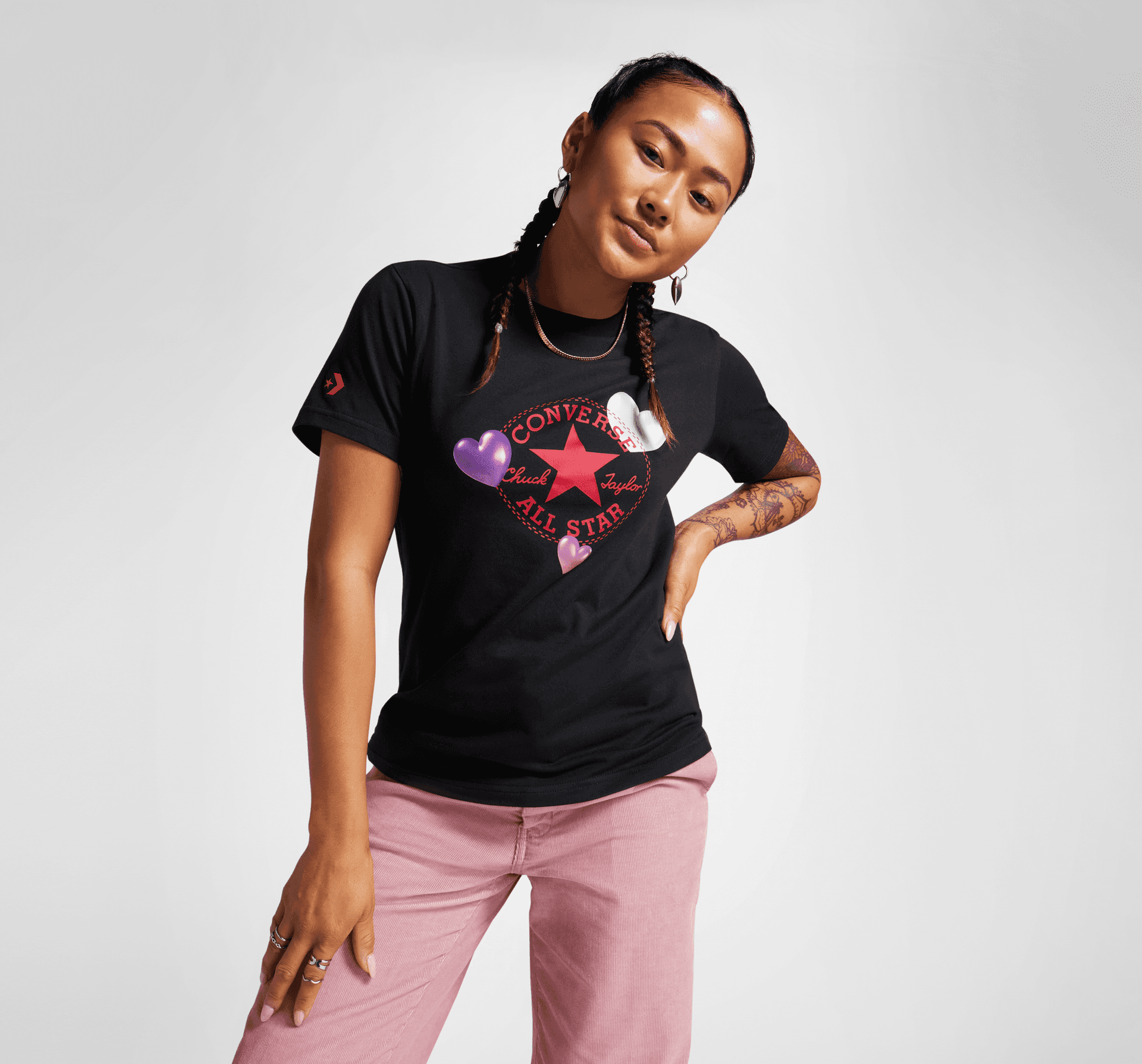 - Grafika inspirowana stylem Y2K podkreśla Twoją sympatię do marki Converse